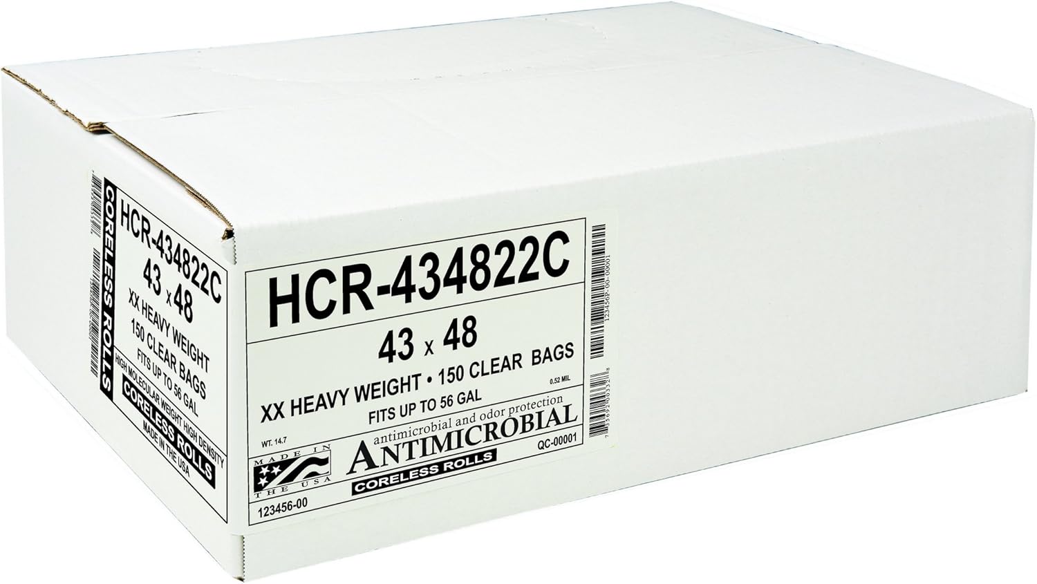 Aluf Plastics High Density Trash Bags, 56 Gallon, 150 Count, 22 Micron (eq), 43" x 48", Clear, for Bathroom, Office, Industrial, Commercial, Janitorial, Municipal, Recycling