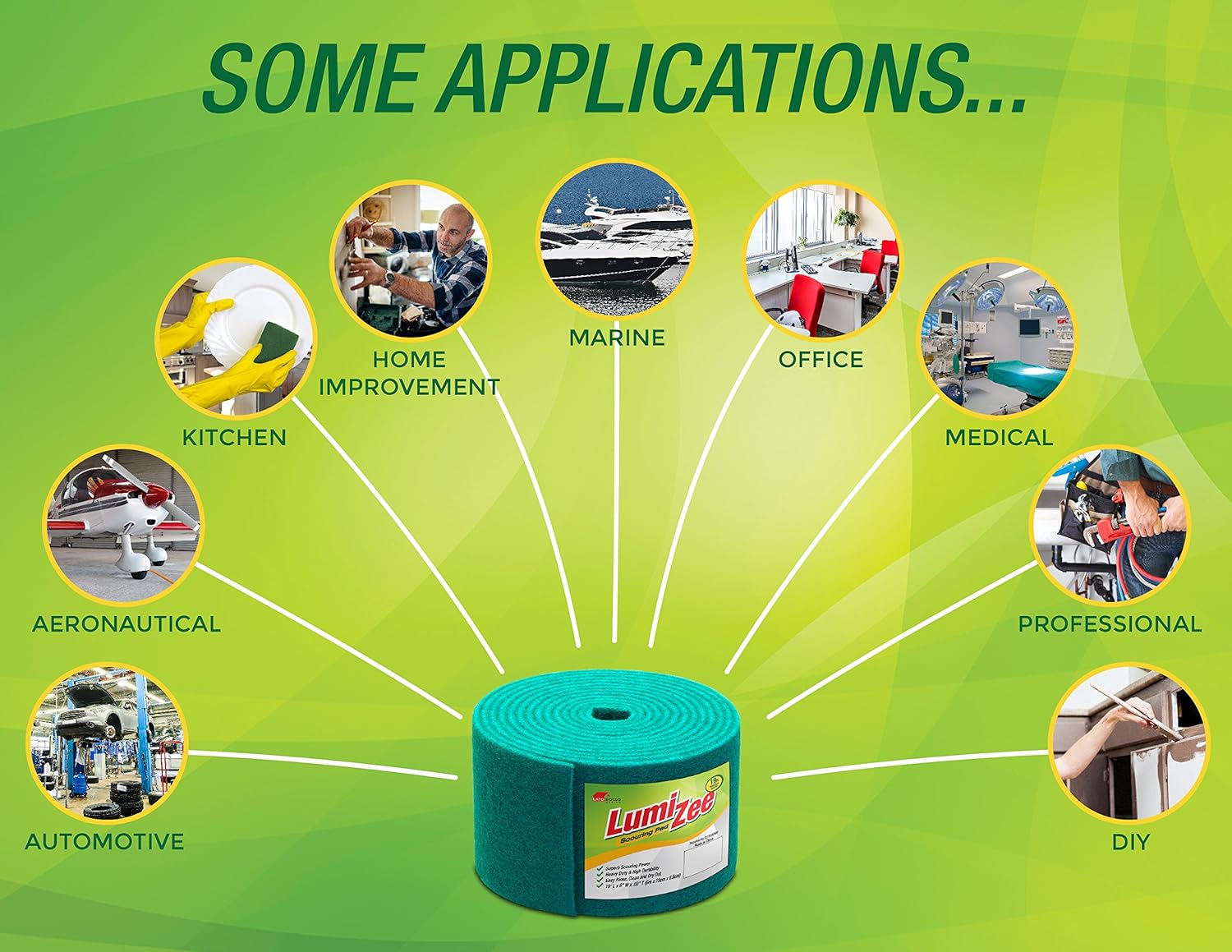 - Included Components : 19ft x 6in x 0.3in (6m x 15cm x 8mm) +/- .1in Size Tolerance of Heavy Duty Green Scouring Pad Sponge