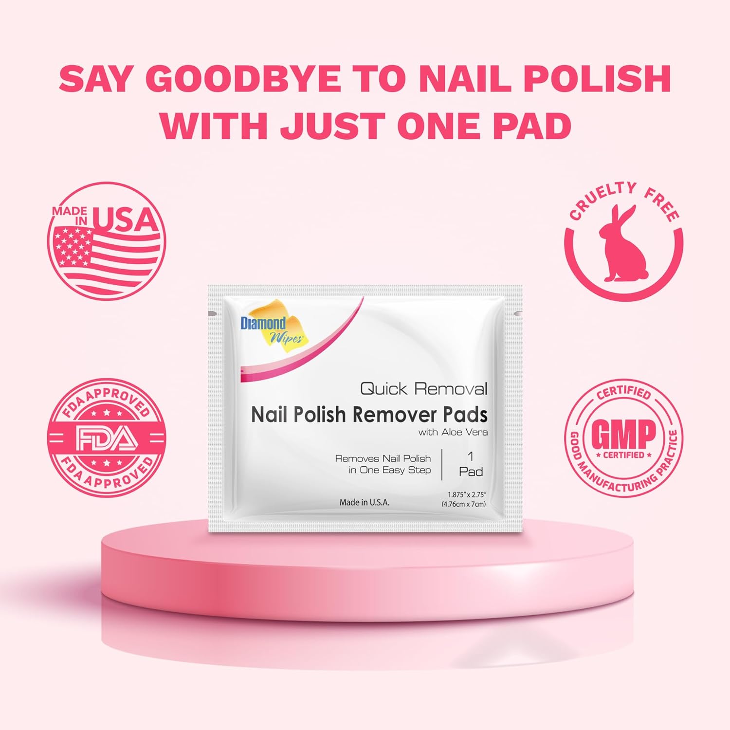- COST-EFFICIENT - One pad for 10 nails. Our nail polish remover pads are potent enough to lift away all the polish on your fingers with a single pad only. Save money on fingernail polish remover pads with Diamond Wipes.