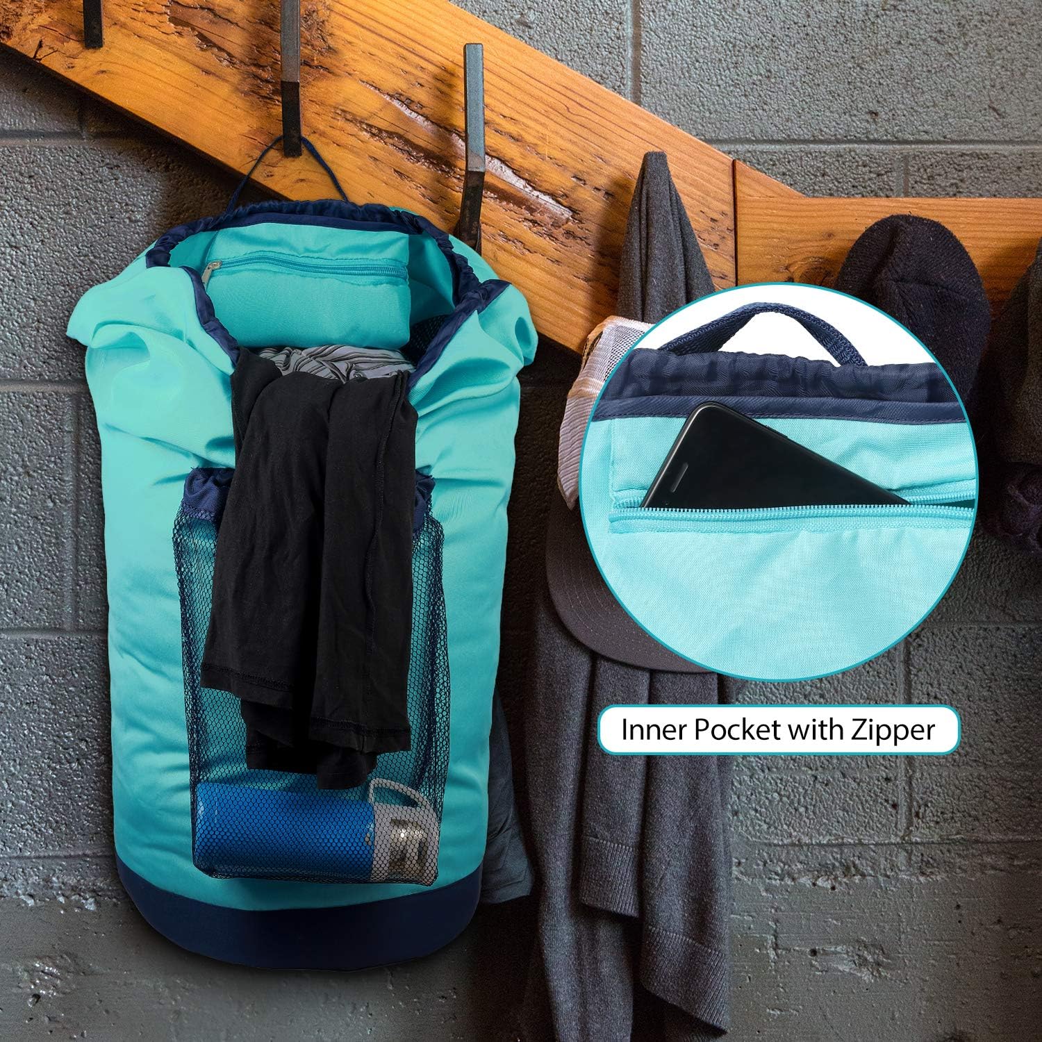 - USE AS HANGING HAMPER - Hang this laundry backpack on the wall or door as hanging laundry hamper with the reinforced hanging loop on the bag to collect dirty laundry. Suitable for college, camping and home.