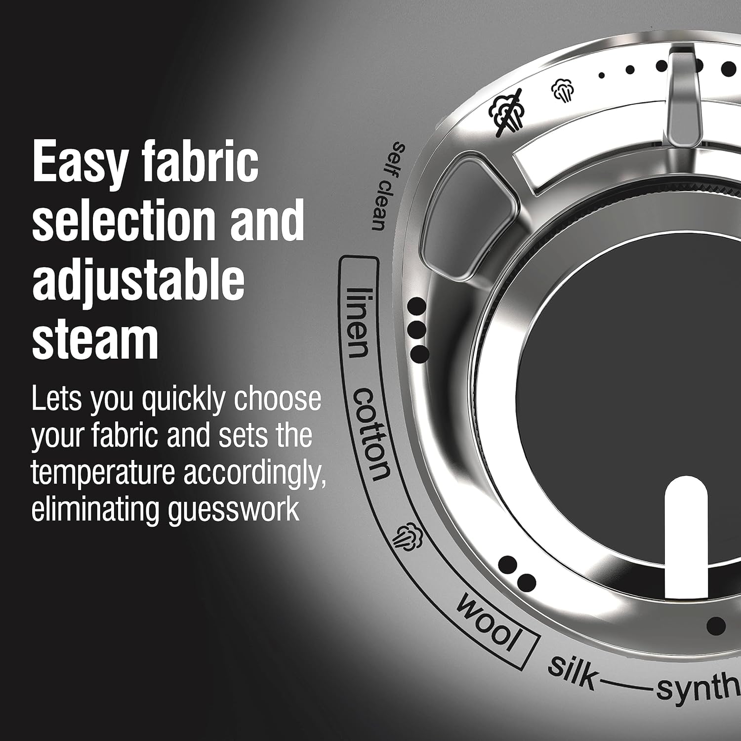 - EASY FABRIC SELECTION AND ADJUSTABLE STEAM: The temperature control dial lets you quickly choose your fabric and sets the temperature accordingly, eliminating guesswork. The adjustable steam lever goes from no steam to full power with just a quick slide.