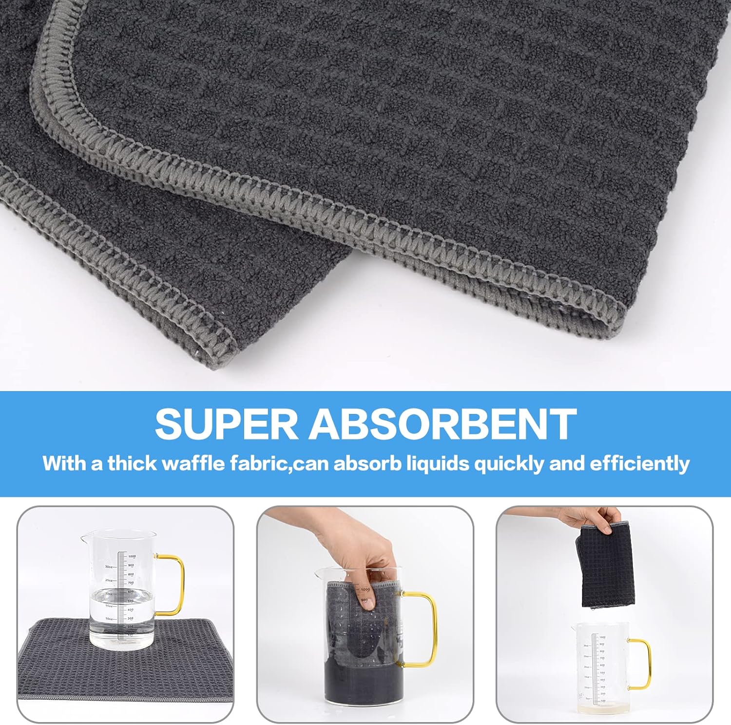 - ABSORB LIQUID QUICKLY WASHCLOTH FOR KITCHEN: These dish cloths are super absorbent, dry quickly, and any stains or grime from wiping counters washes right out with warm sopy water. Works well for buffing hard water spots from wet dishes