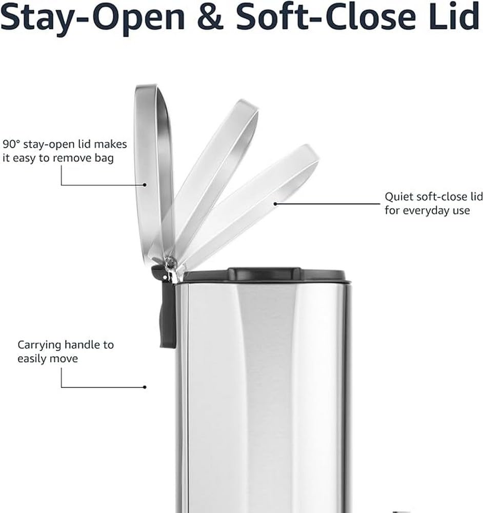 Amazon Basics Smudge Resistant Rectangular Trash Can With Soft-Close Foot Pedal, Brushed Stainless Steel, 30 litre/7.9 Gallon, Satin Nickel Finish, 13.8"L x 11.8"W x 25"H