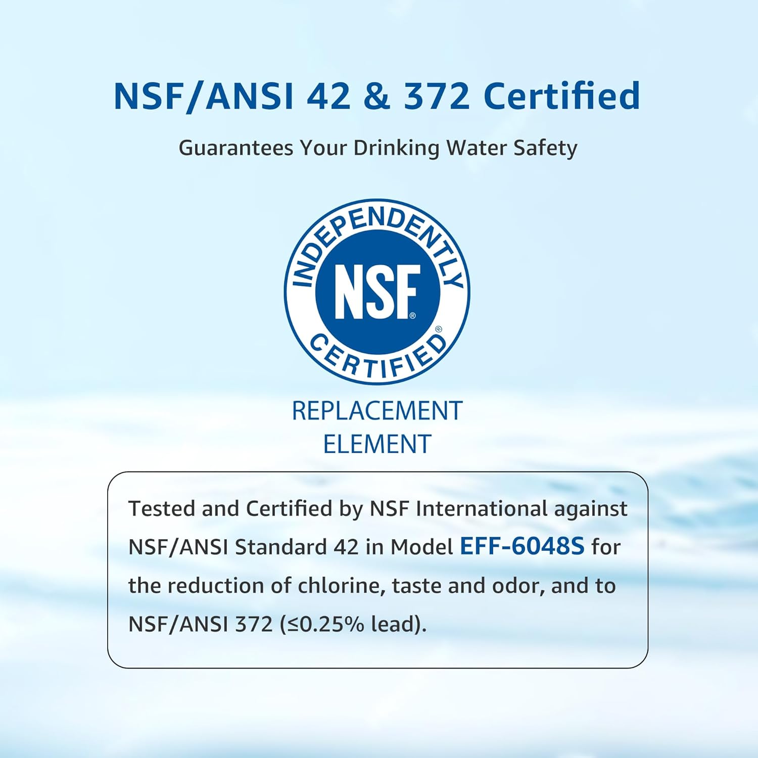 - External Testing Certification : NSF 42&372