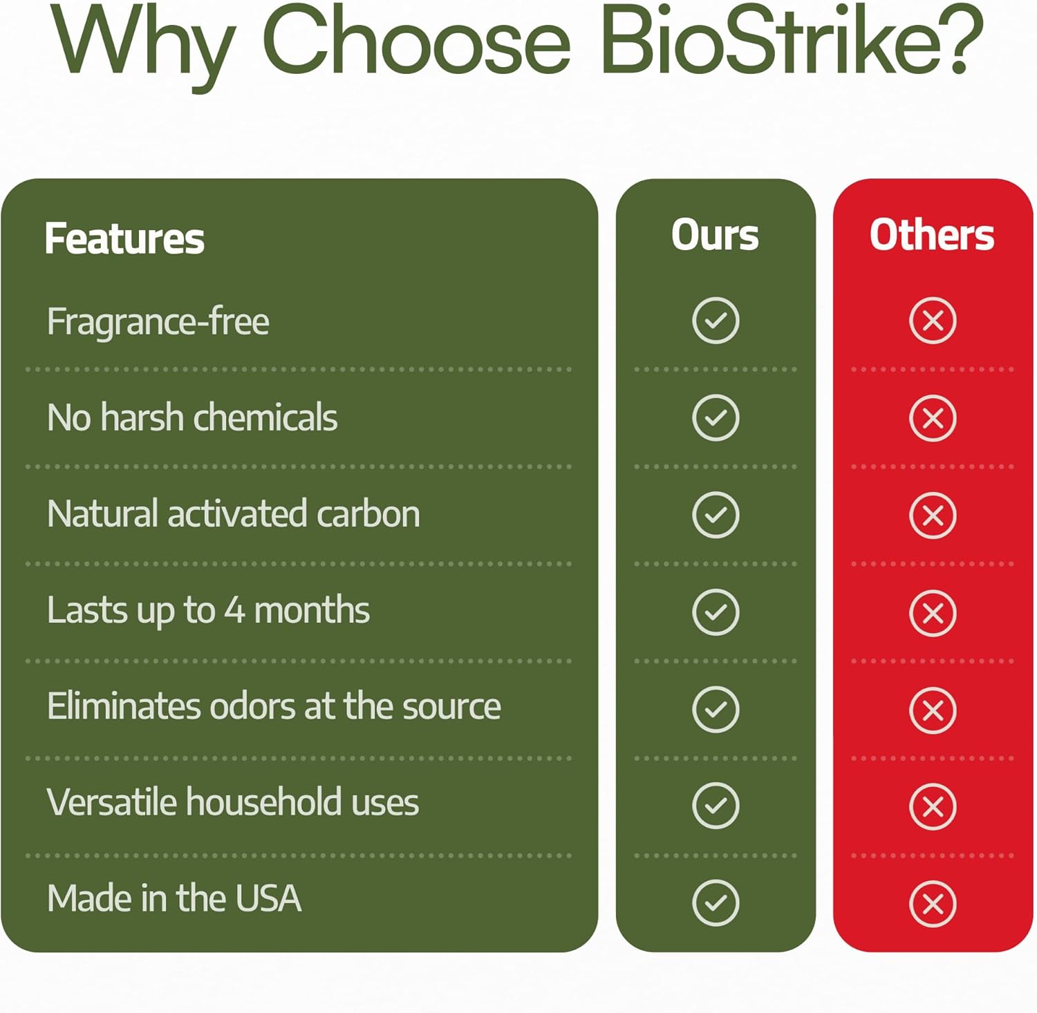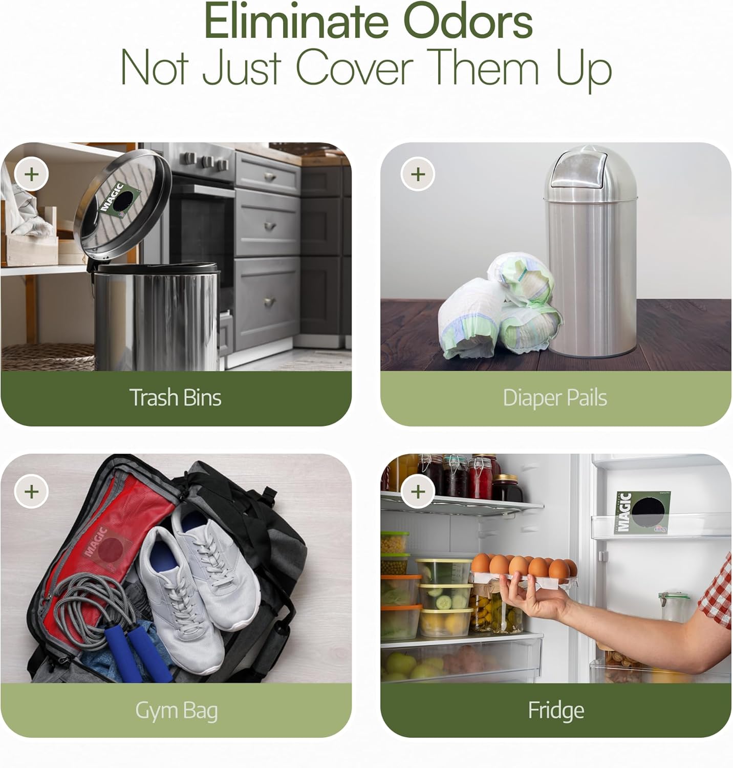 BioStrike Odor Magic - Activated Charcoal Odor Absorber Pads - Kitchen Odor Remover - Easy Peel & Stick Design - All Natural Filters for Trash Cans, Fridges & Small Spaces - Made in USA (8 Pack)