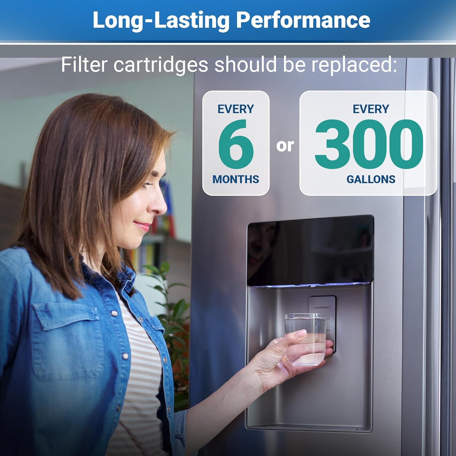 - For best filtration results, filter cartridges should be replaced every 6 months or 300 gallons.