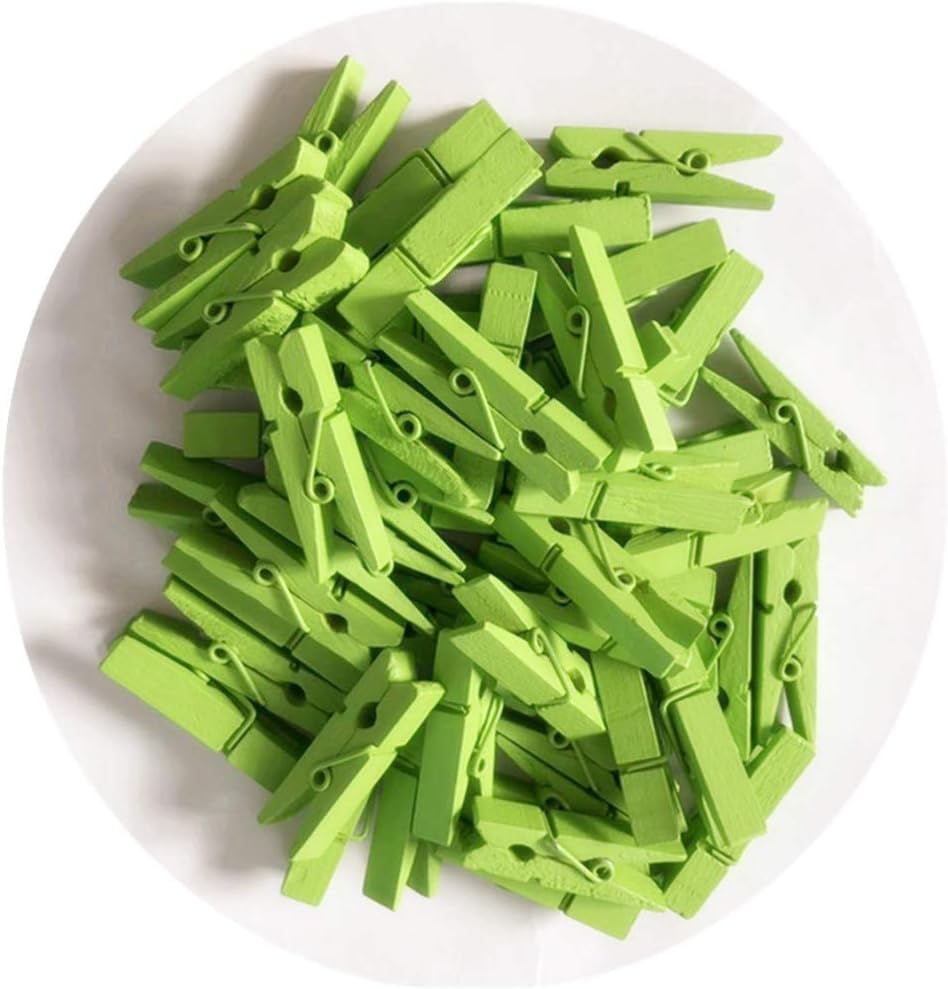 DurReus Wooden Clothespin Ornaments Cute Mini Strong Clothes Pin Hanging Pictures Crafts Arts Birthday with Twine Pack 50 Light Green