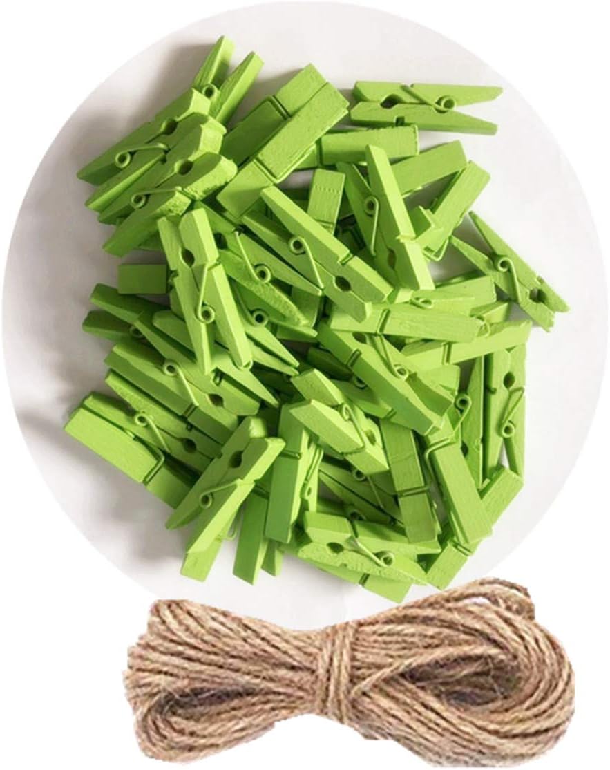 - Tiny Wood Clothes Pin Set: 50 PCS Bright Green Clothespins and 10 Meters (33feet) Jute Twines
