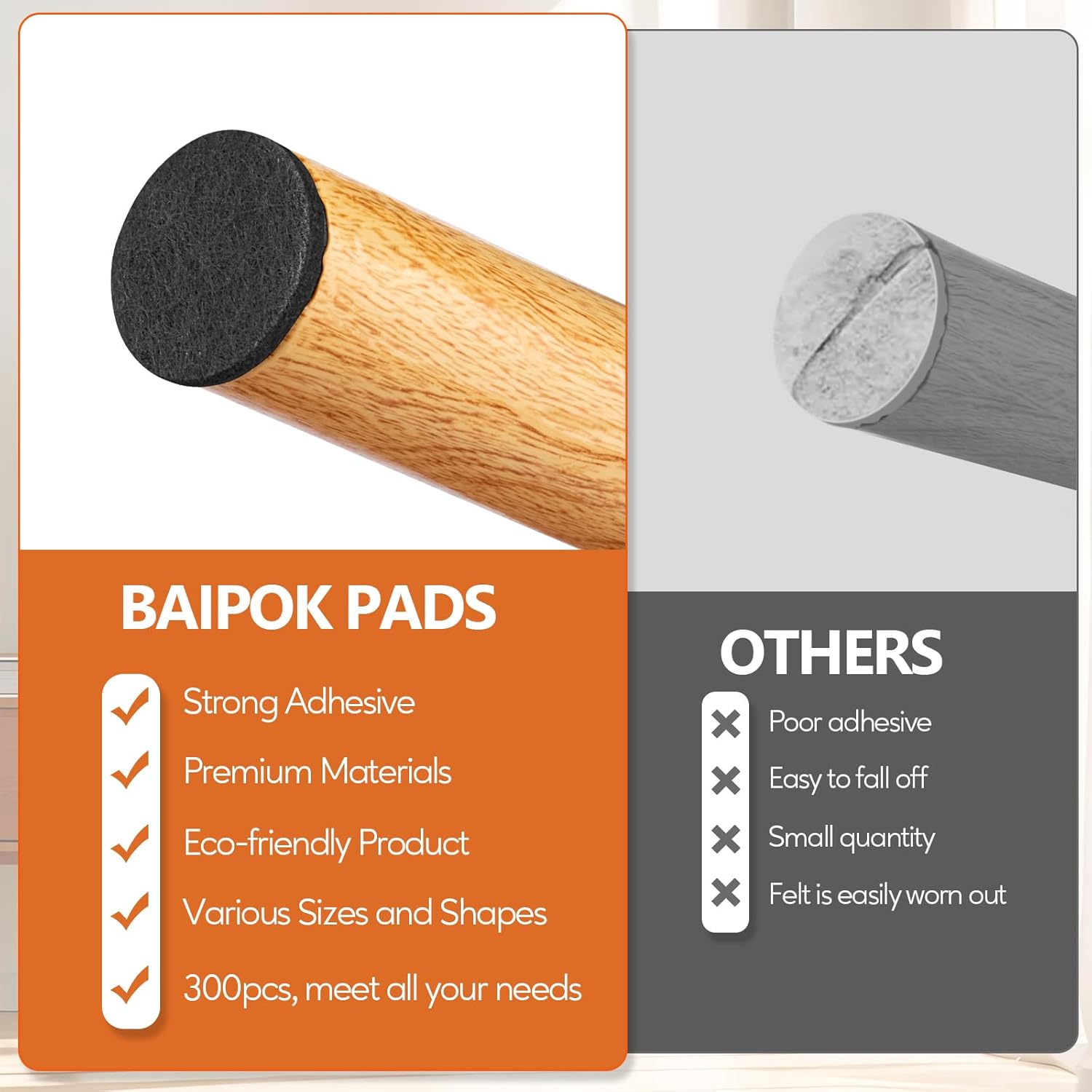 Furniture Pads 300 Pieces Felt Furniture Pads Premium Huge Pack, BAIPOK Self Adhesive Anti Scratch Floor Protectors for Desk Chair Legs and 60 Rubber Bumpers for Hardwood Tile Floor