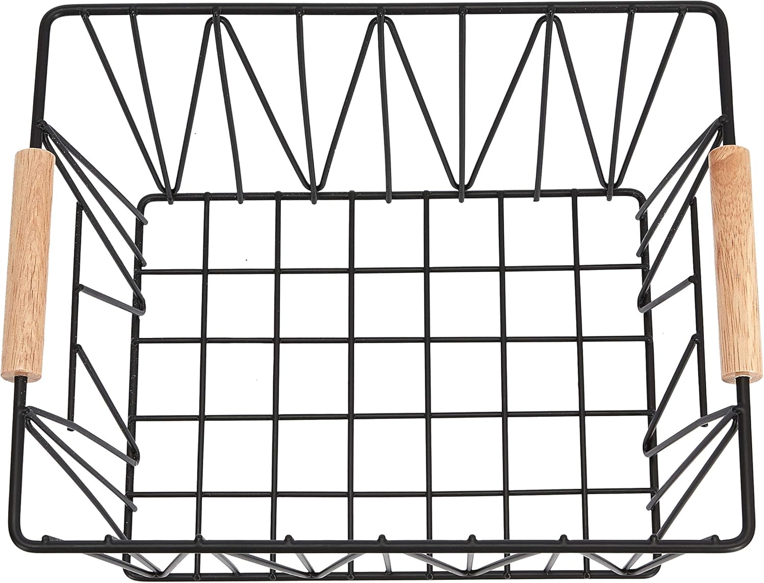 Amazon Basics Rectangular Wire Storage Baskets, Set of 3, Standard, Black