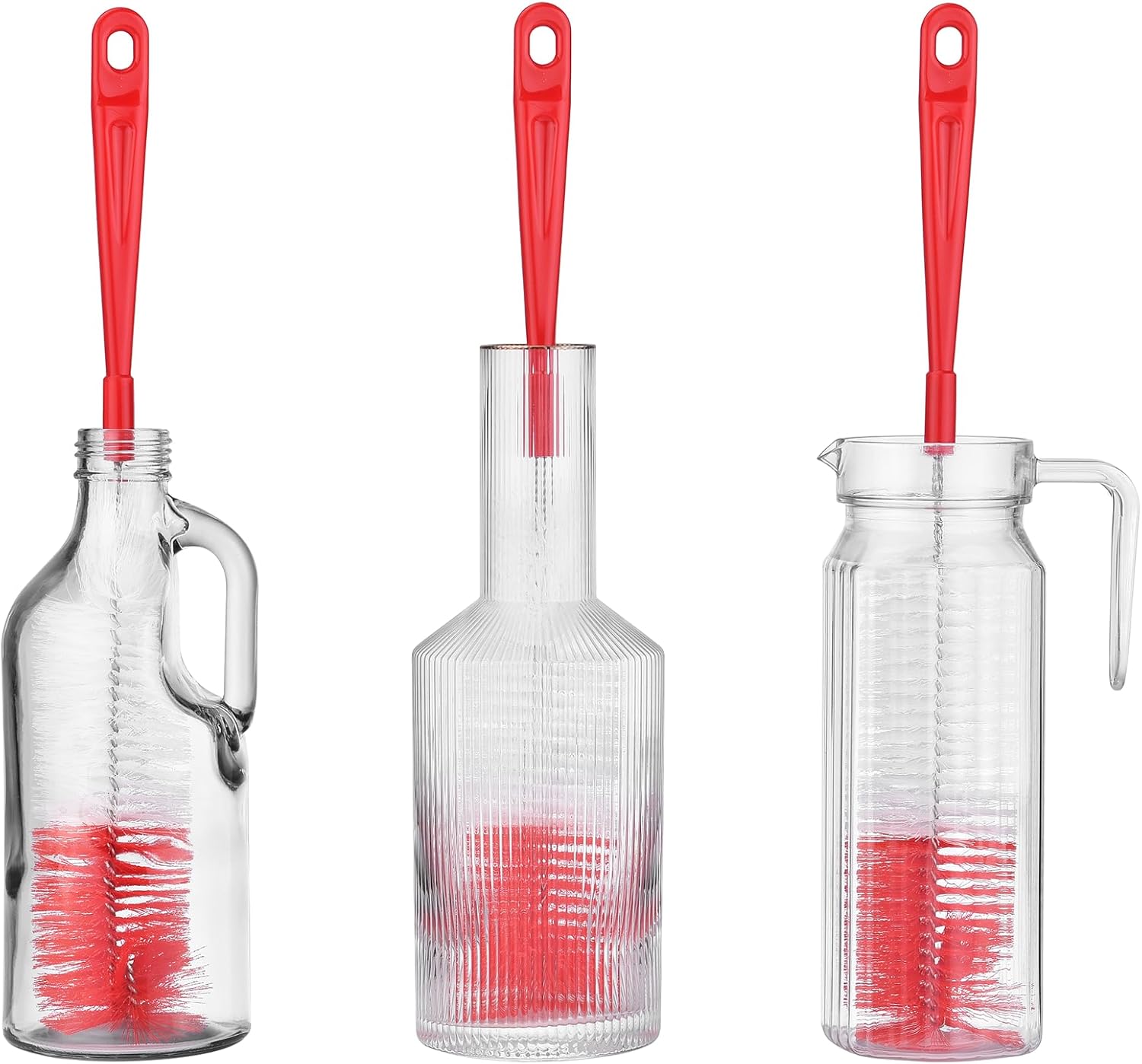 ALINK 3-Pack Long Red Bottle Cleaning Brush for Narrow Neck Beer, Wine, Kombucha, Hydroflask, Thermos, Sport Well, Carafe, Brewing Bottle Cleaner, 16 Inches