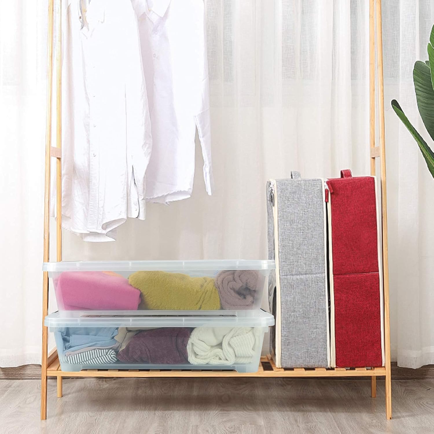 3-Pack Plastic Under Bed Storage Box Container, 40 Quart Clear Stackable Storage Box Wheeled Latching Box