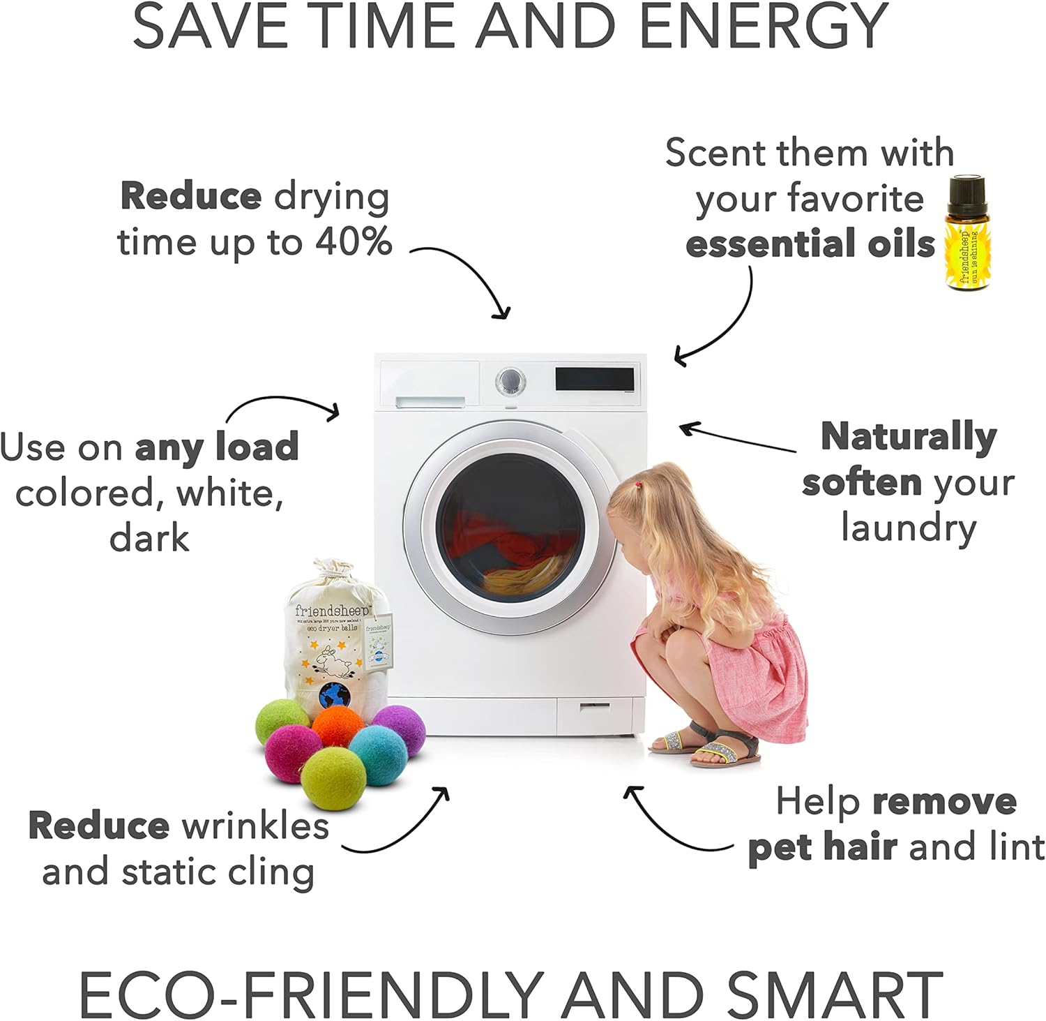 - ECO-FRIENDLY AND REUSABLE FOR 1000+ LOADS, replaces dryer sheets & liquid fabric softeners. Makes your laundry soft and fluffy, reduces wrinkles and static cling, and shortens drying time by up to 40% depending on load size. Your sheets and towels are fluffier, less balling and twisting. Makes you SAVE TIME, ENERGY, AND MONEY! All by keeping safe and healthy you, your family and the environment.
