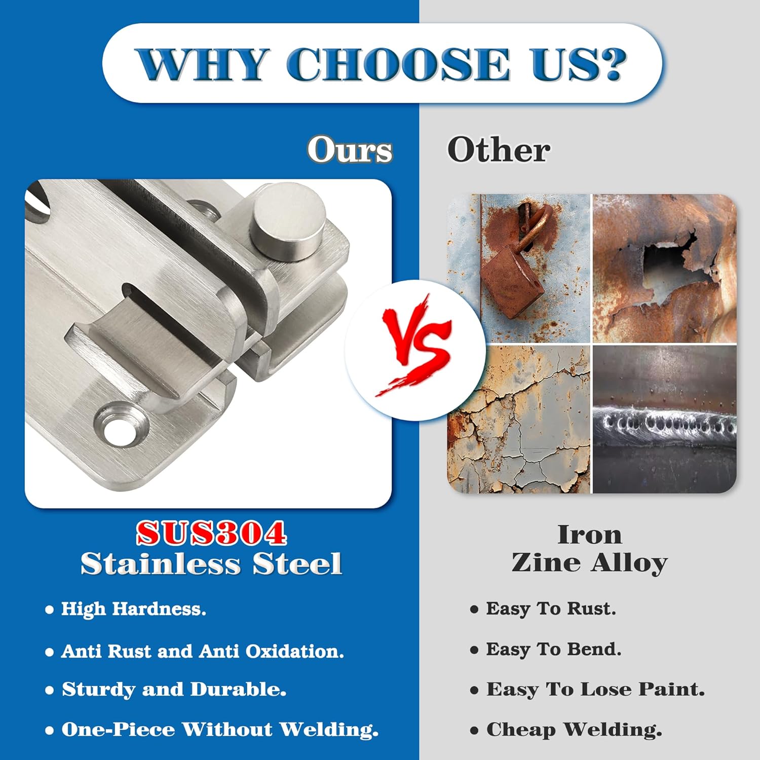 - 【Hand Brushed Finished】The latch lock is finished by hand fine polishing brushed, with smooth and pure surface, retaining the most original beautiful stainless steel color, which can resist daily scratches and corrosion