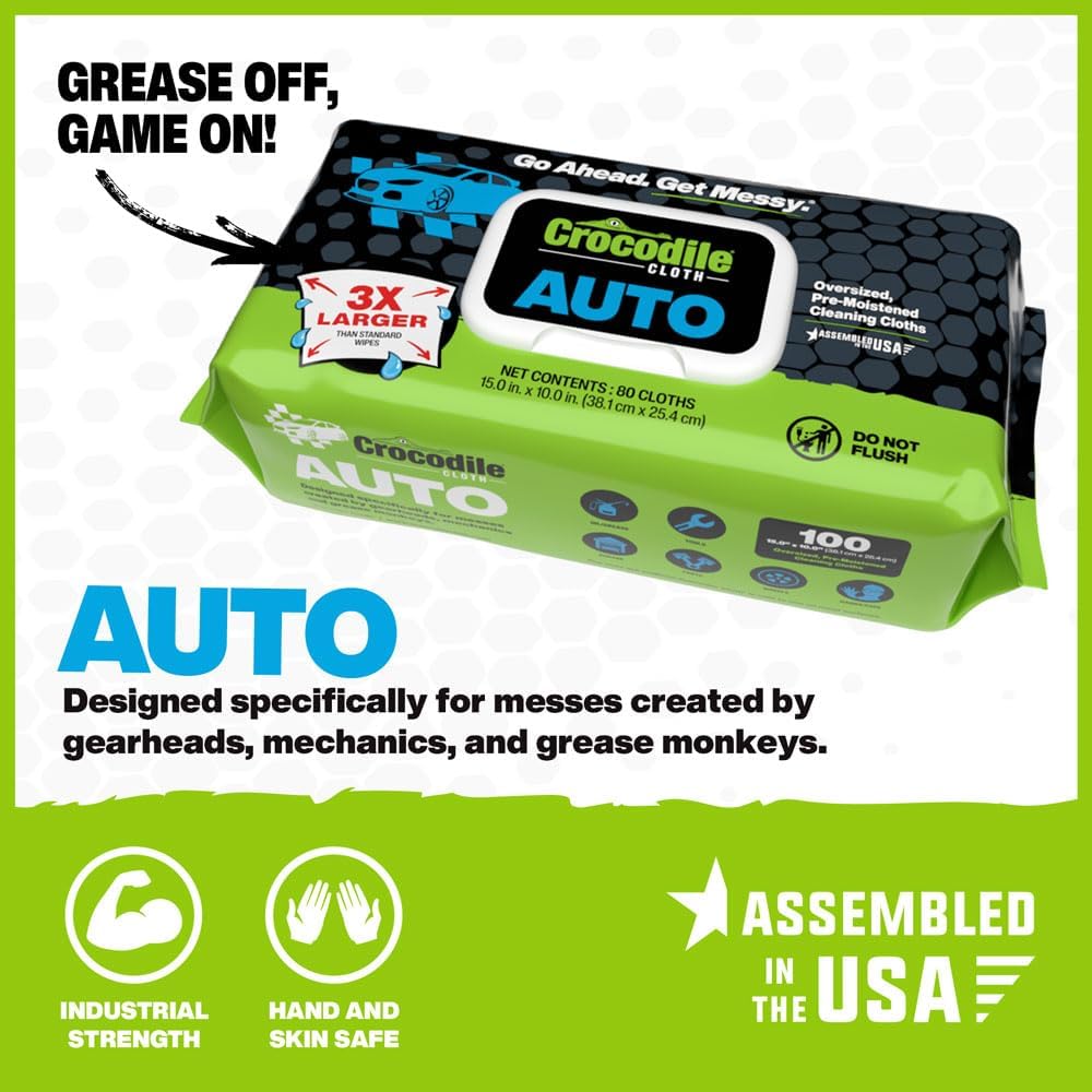 Crocodile Cloth Auto Cleaning Wipes – 600 Count (6 Packs of 100) XL 15" x 10" Heavy-Duty Car Wipes for Engine Degreaser, Detailing, Tires, Tools & DIY Projects