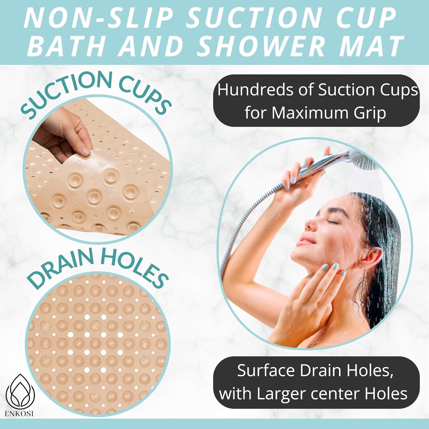- Great For The Elderly, The Babies & Young Children: Nonslip & generously sized, the Enkosi bath mat ensures the safe bathing & showering of your baby, toddler, as well as your elderly parents or grandparents.