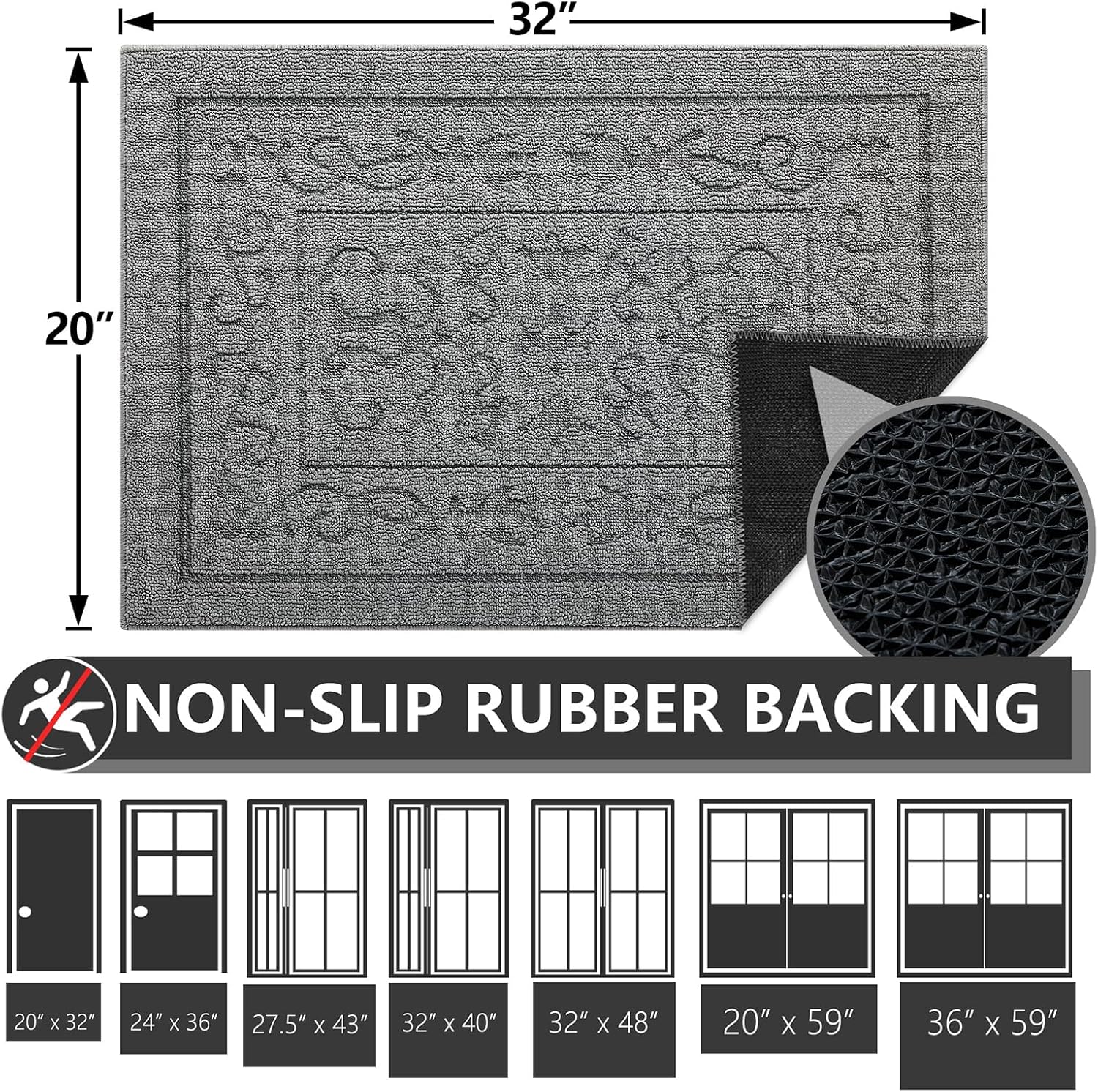 FONEYI Indoor Door Mat 20" x 32", Dirt Trapper Door Mats Non-Slip Entryway Rugs Washable, Absorbent Resist Dirt Welcome Mat, Low Profile Inside Floor Mats for Front Back Door and Entryway, Light Grey