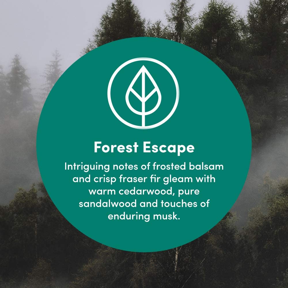 - IRRESISTIBLE NATURE-INSPIRED FRAGRANCE: Forest Escape is made out of intriguing notes of frosted balsam and crisp fraser fir gleam with warm cedarwood, pure sandalwood and touches of enduring musk.