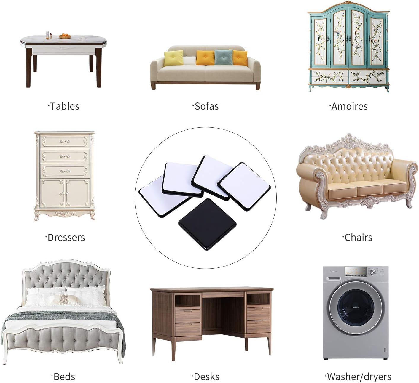 - ☛【Easy To Use】- 1)Please clean furniture legs & dry the surface. 2) Peel off the white protective cover form the furniture slider . 3) Stick to the furniture leg. 4) Wait 1 hour for max hold.