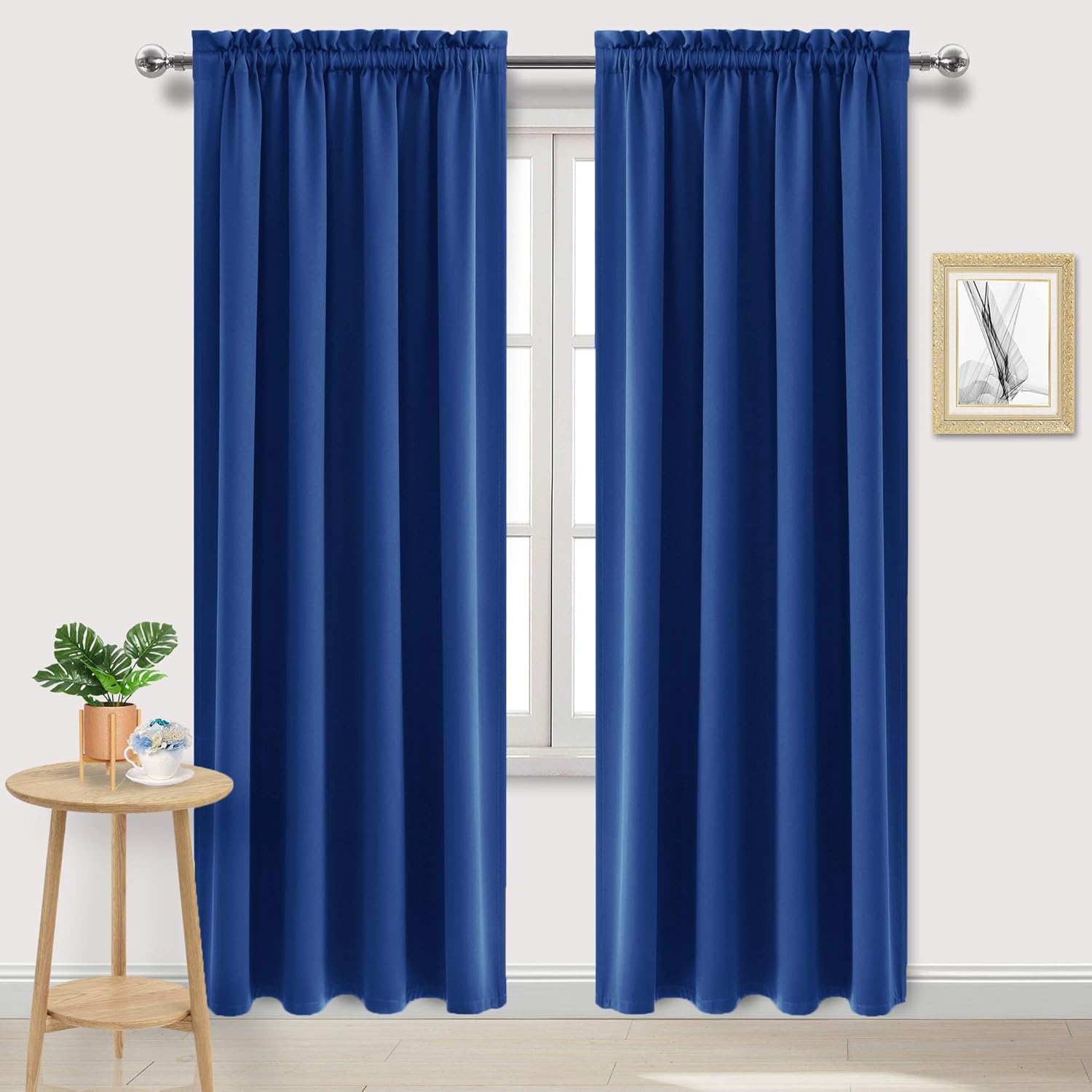DWCN Blackout Curtains Room Darkening Thermal Insulated Bedroom Curtains Window Curtain Panels, 52 x 84 inches Long, Set of 2 Classic Blue Rod Pocket Drapes