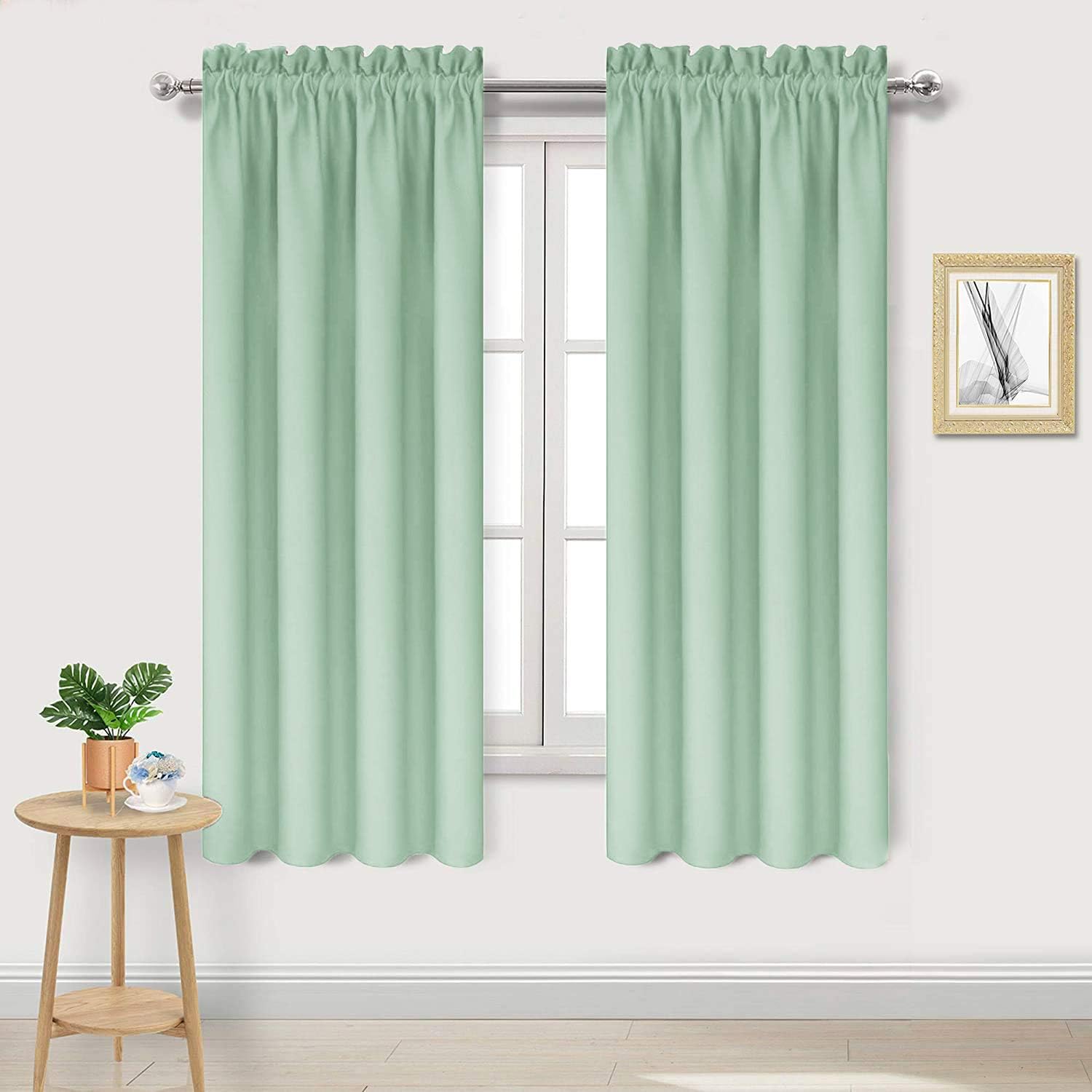 DWCN Blackout Curtains Room Darkening Thermal Insulated Bedroom Curtains Window Curtain Panels, 42 x 63 inches Long, Set of 2 Light Green Rod Pocket Drapes