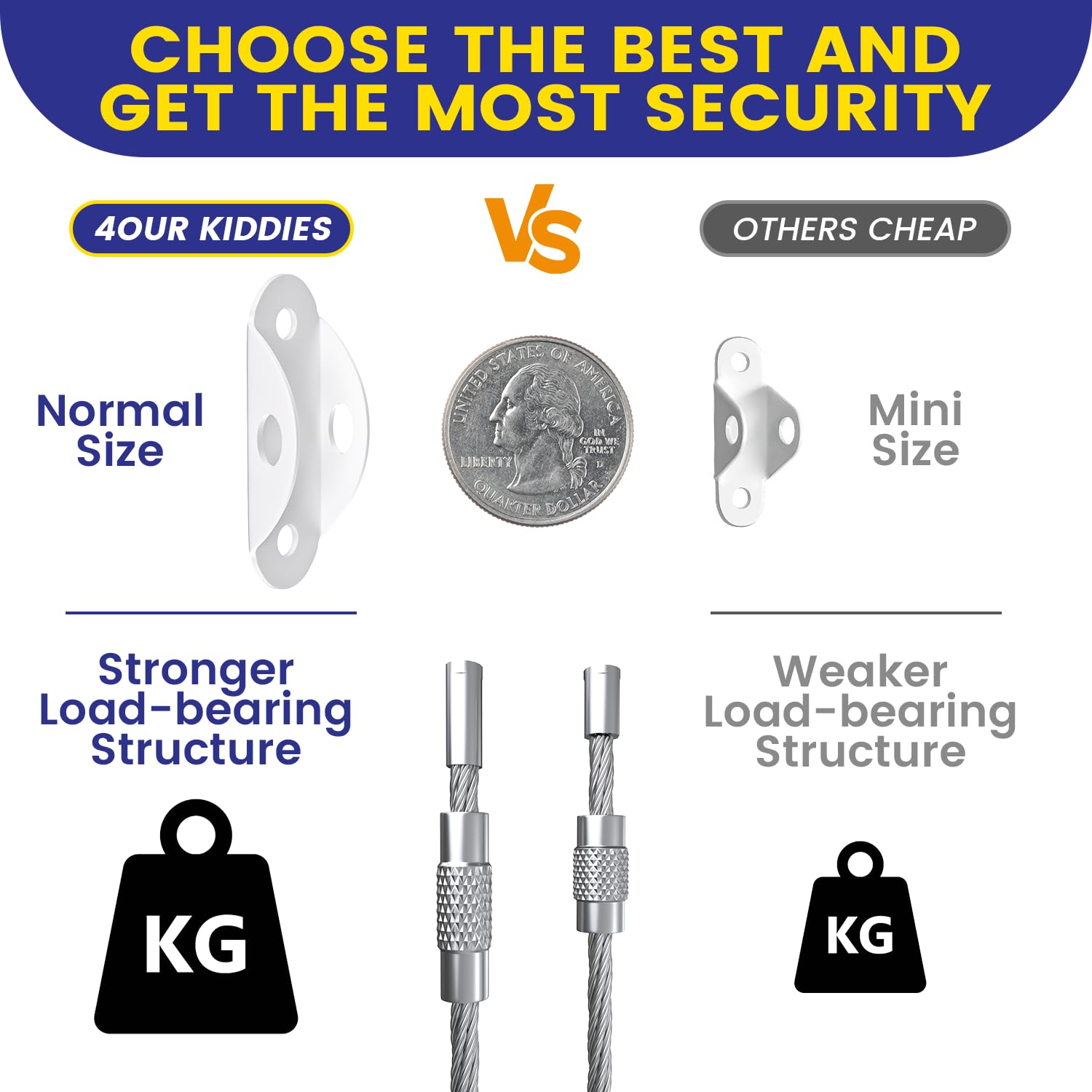 4our Kiddies 10 Pack Furniture Anchors for Baby Proofing, Anti Tip Furniture Wall Anchors, Secure 400 Pounds Cabinet, Bookcase, Dresser to Wall, Earthquake Furniture Straps for Child Safety