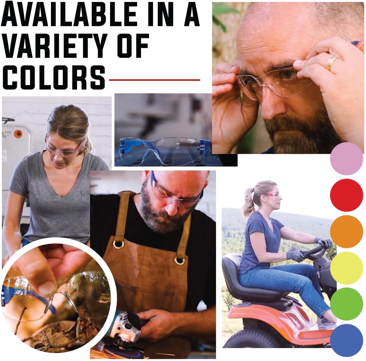 - BISON LIFE Clear Lens Assorted Color Temple Safety Glasses, Color Lens Color Temple, Case of 144 Pairs (24 Blue, 24 Green, 24 Yellow, 24 Red, 24 Pink, 24 Orange)