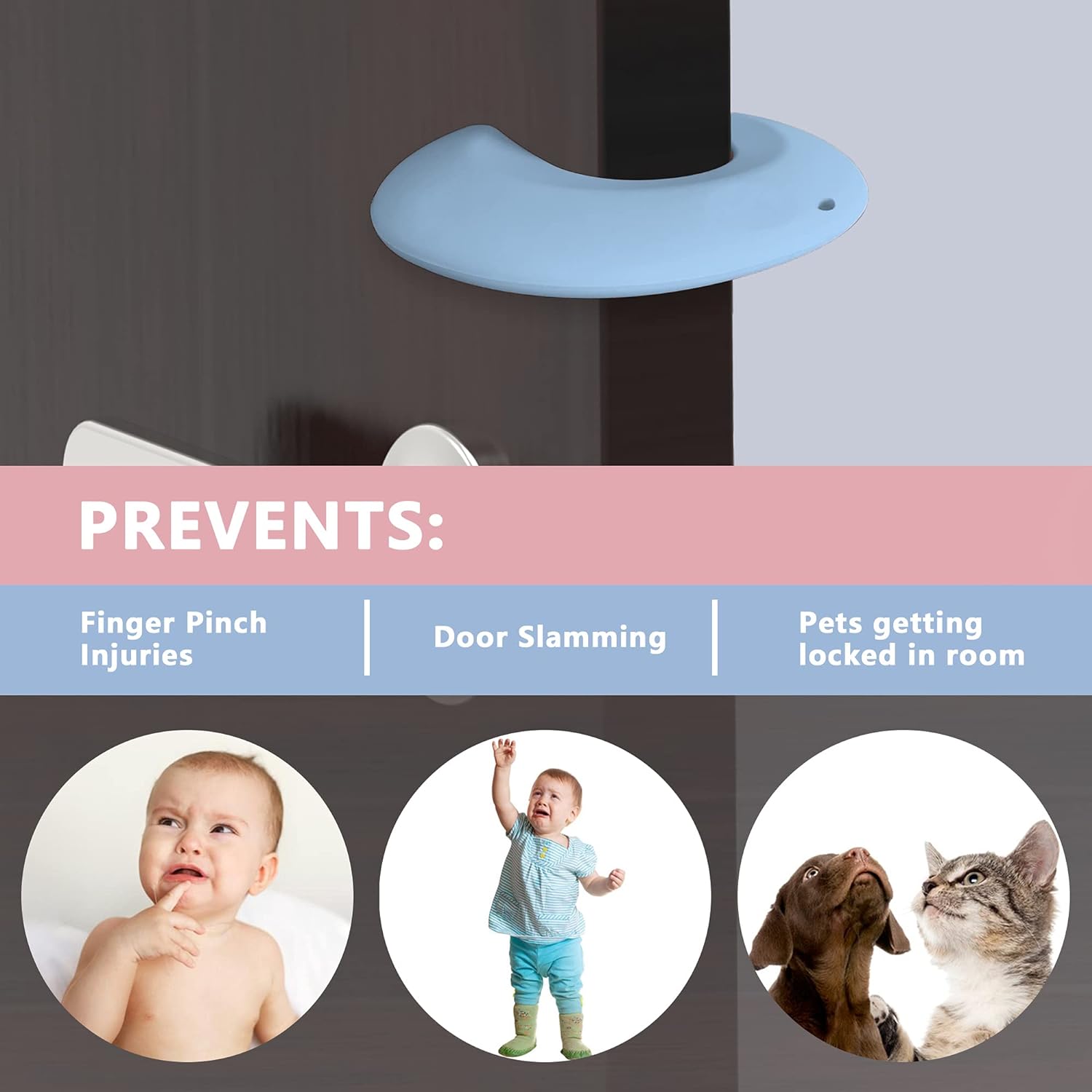 Door Pinch Guard and Door Slam Stopper, Durable Silicone Door Finger Pinch Guard, Prevents Finger Pinch Injuries, Slamming Doors, Door Safety for Kids, 4 Packs Blue Basic.