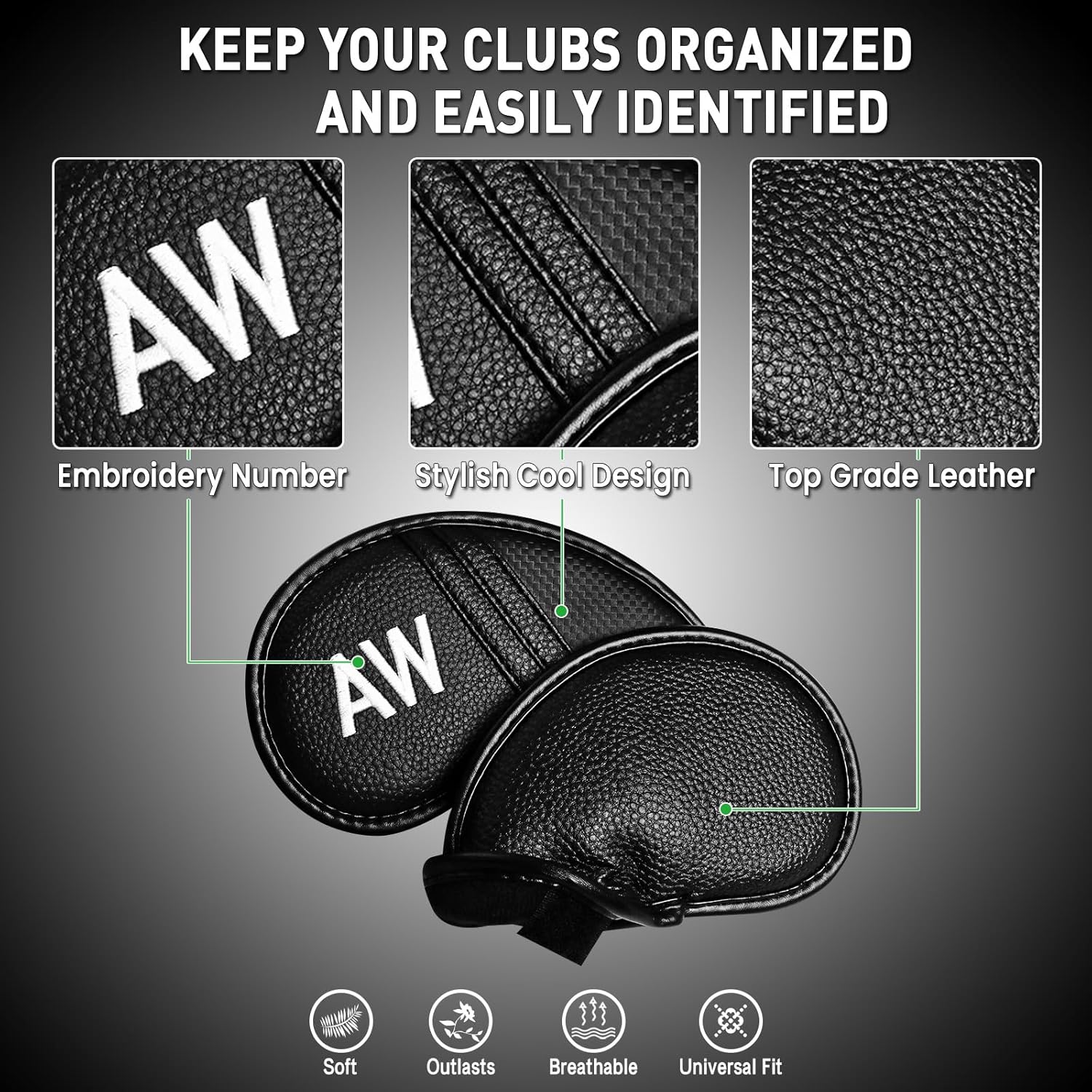 - Premium Synthetic Leather: Crafted with premium synthetic leather, deluxe and resilience. The textured leather finish offers scratch-resistant durability, perfect for driving ranges or club storage.