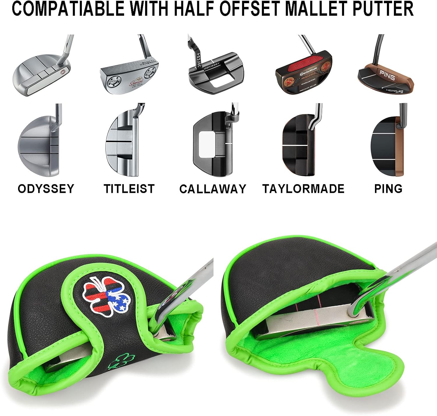 BIG TEETH Putter Cover Mallet Putter Cover Half Mallet Small Golf Headcover, Mini Club Head Protector Magnetic Closure Black Leather for Odyssey White Hot #5 Golf Rossie Tour Edge Chipper etc