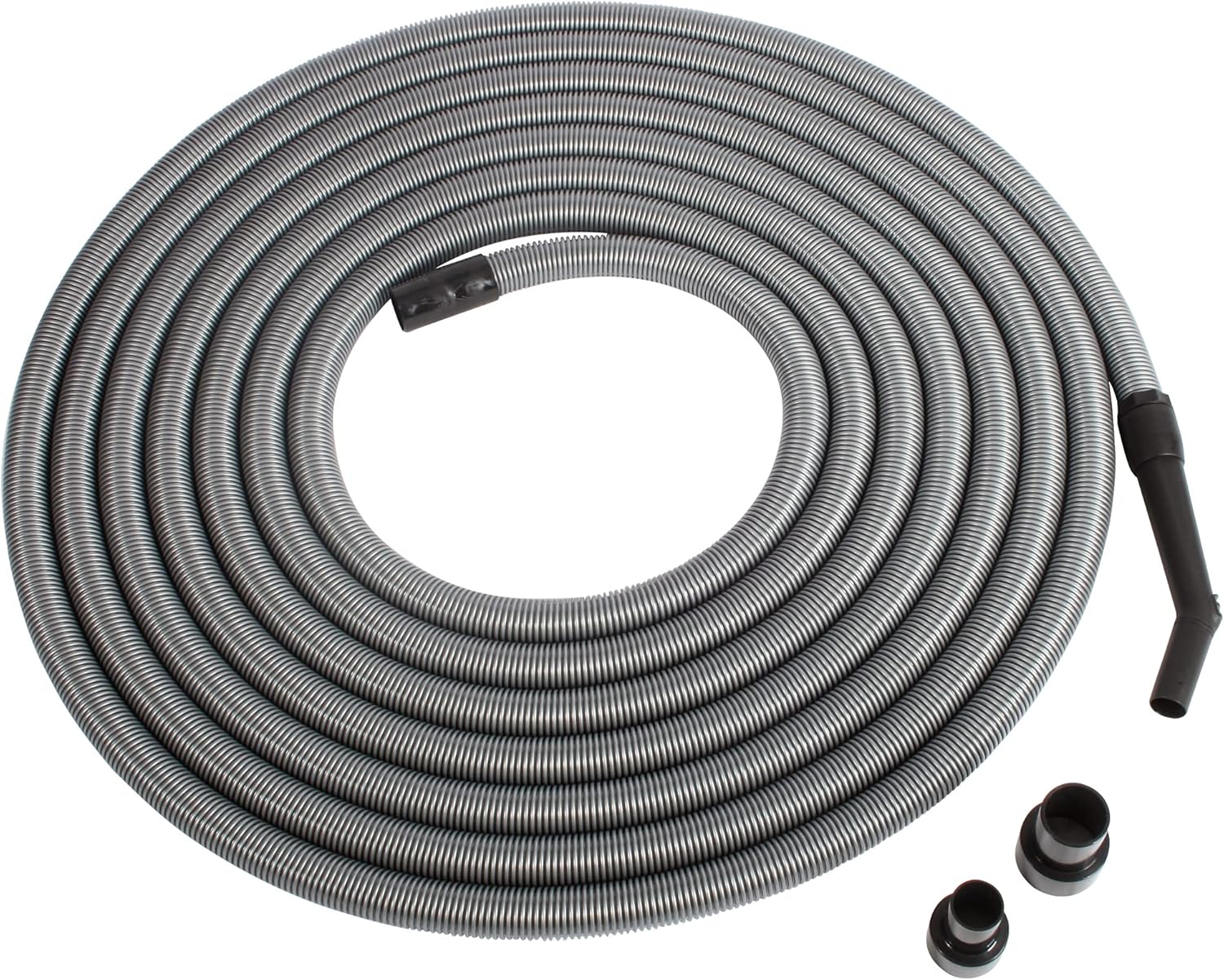 Cen-Tec Systems 50 Ft. Premium Shop Vacuum Extension Hose with 2 tank adapters and 1.25" curved end, Silver