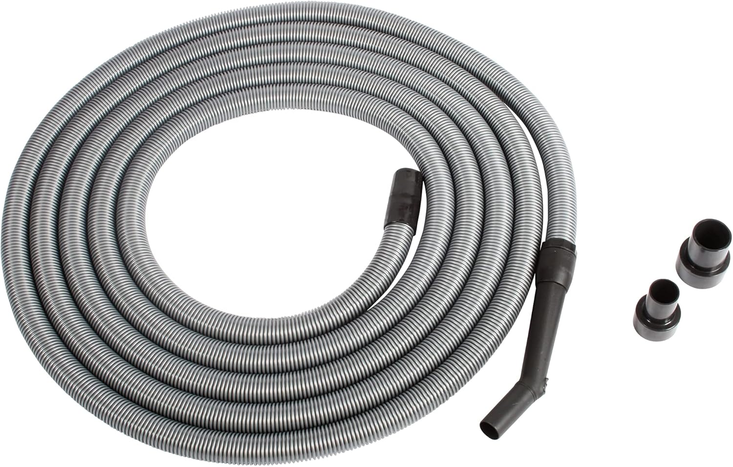 Cen-Tec Systems 30 Ft. Premium Shop Vacuum Extension Hose with 2 tank adapters and 1.25" curved end, Silver