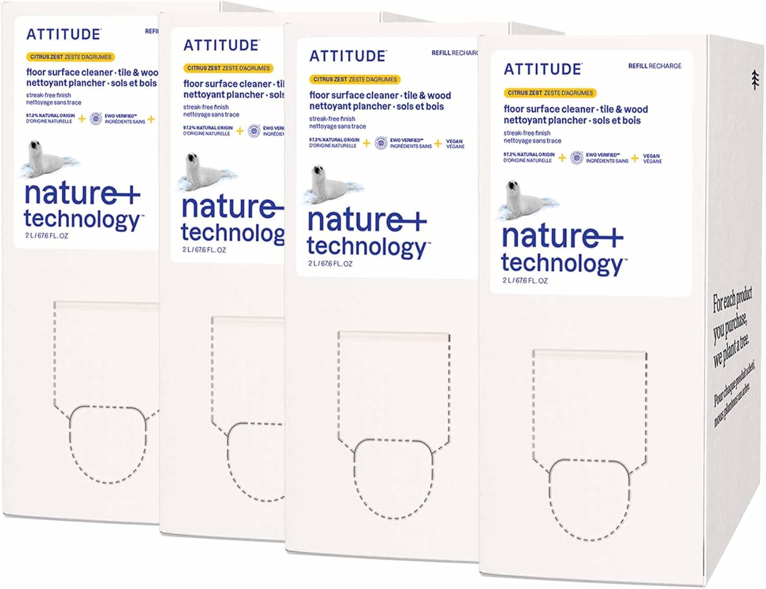 ATTITUDE Floor Cleaner Refill, EWG Verified, Streak-Free, Vegan & Plant-Based for Tile, Wood & Laminate Floors, Citrus Zest Scent, 67.6 Fl Oz (Pack of 4)