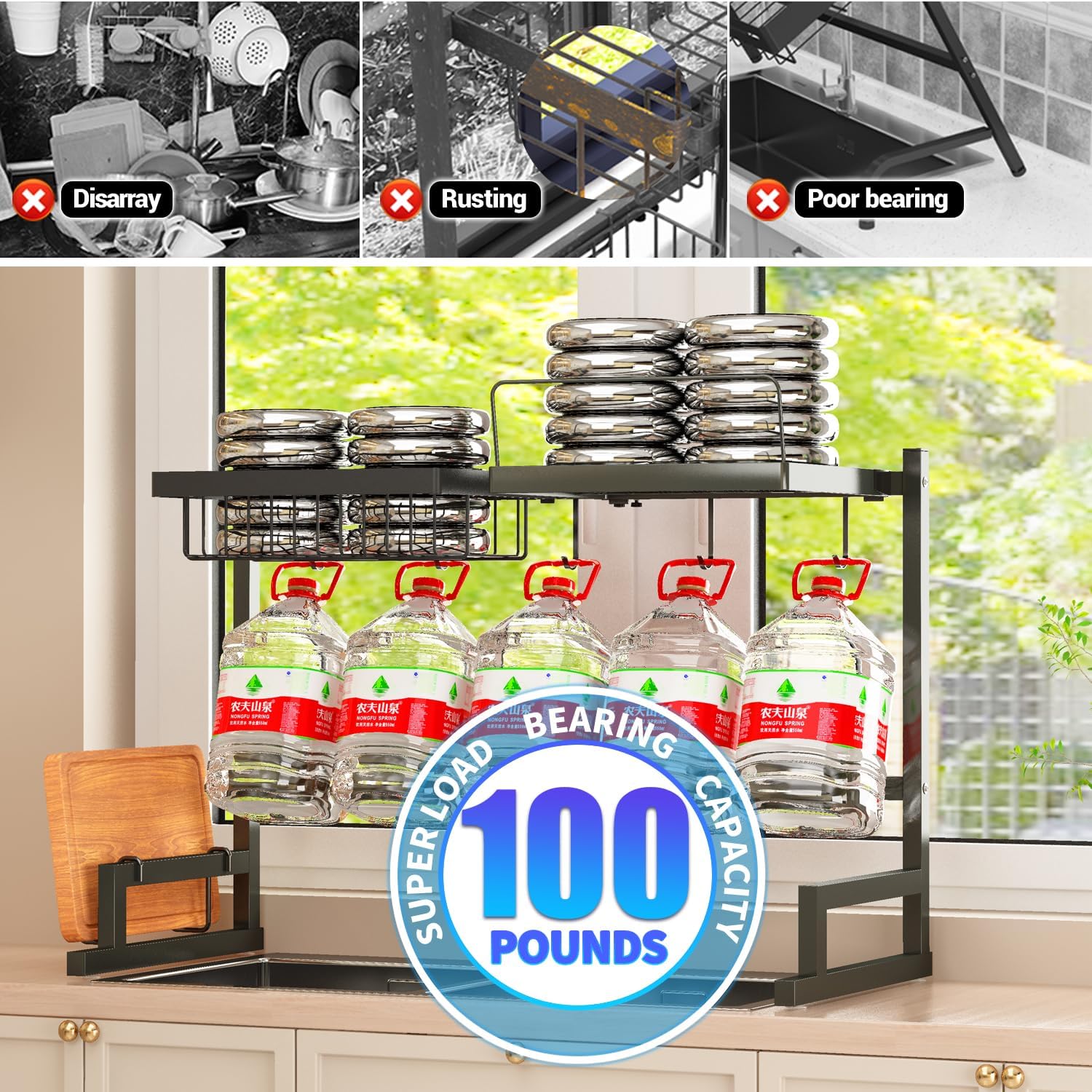 ADBIU 【Fit Sink 24"- 35.6" L 2024 Over The Sink Drying Rack (Expandable Dimension) Snap-On Design 2 Tier Large Dish Rack Kitchen Count Organization and Storage