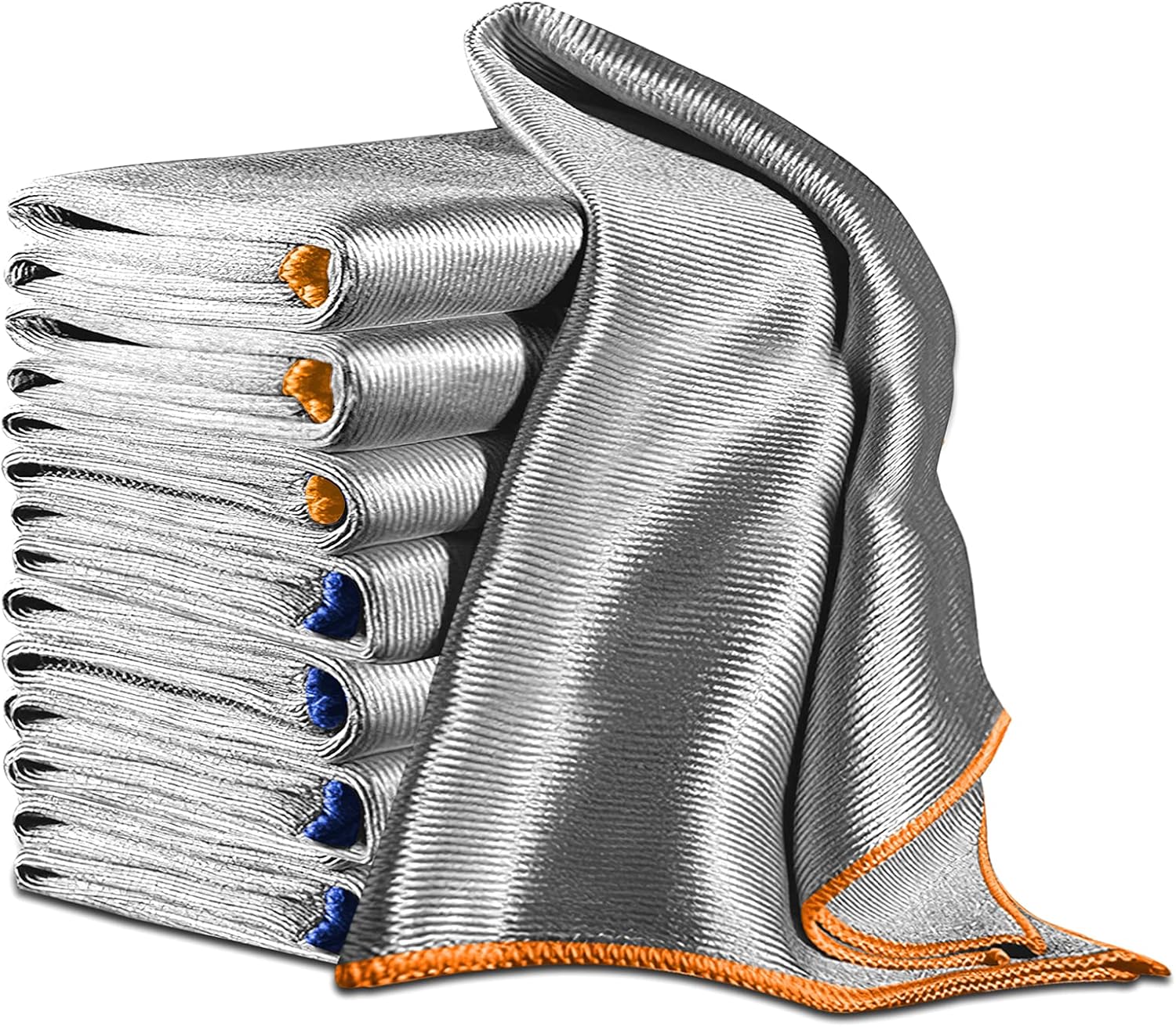 Streak Free Miracle Cleaning Cloth Easy Clean Pack of 8-12" x 16" Microfiber Dish Cloths Glass Polishing Lint Free for Kitchen Mirrors Wine Car