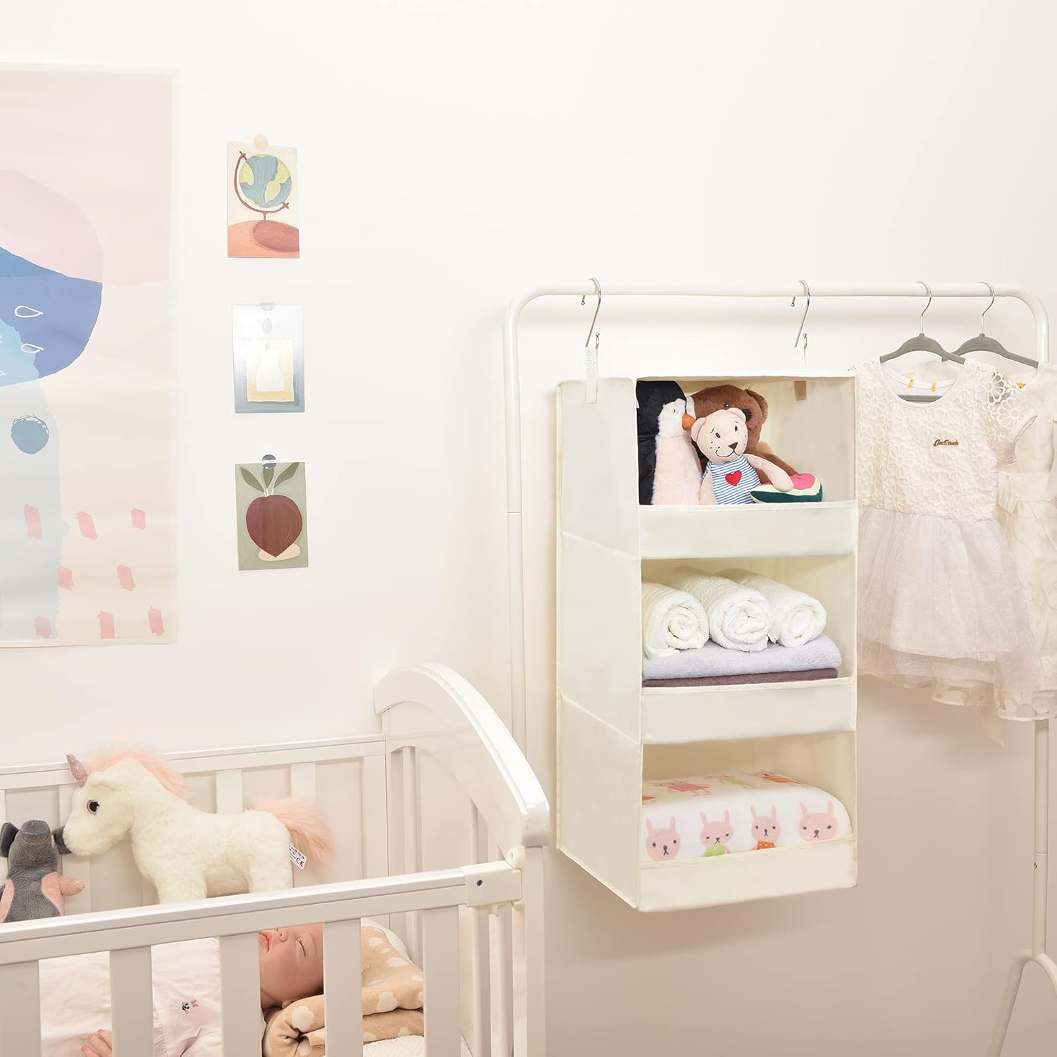 GRANNY SAYS 3-Shelf Hanging Organizer, Foldable Hanging Closet Storage, Closet Shelves Organizer for Camper, Beige, 29 ½" H X 12" W X 12" D, 2-Pack