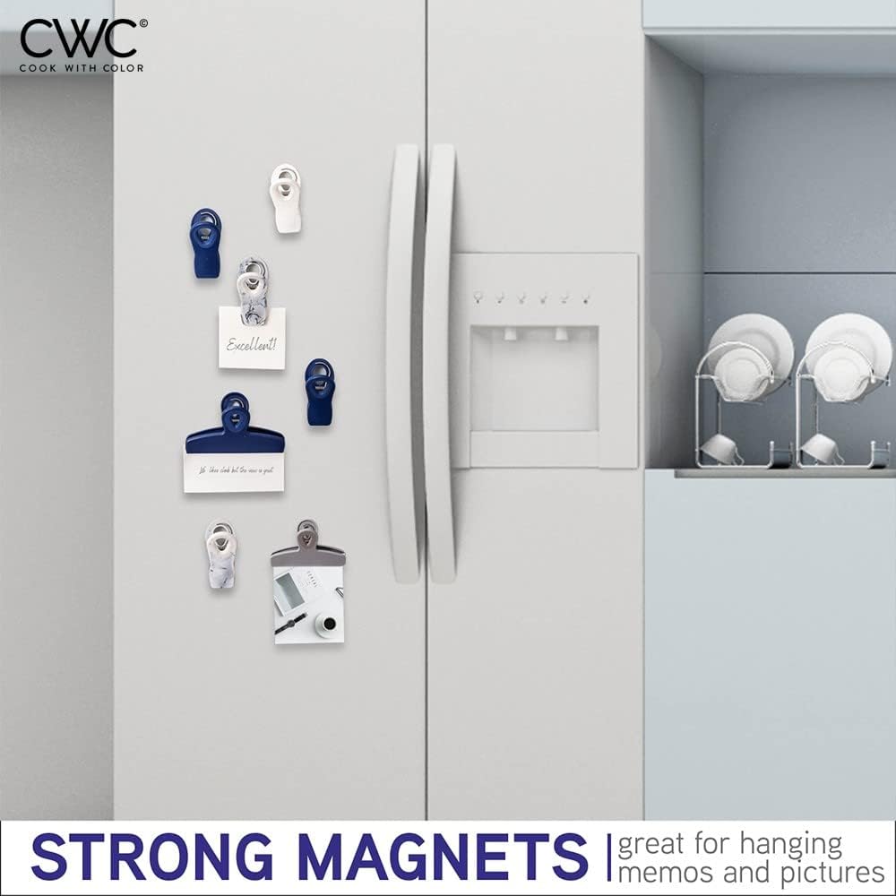 COOK WITH COLOR Bag Clips - Heavy Duty Chip and Refrigerator Magnet Clip for Food Storage, Blue and White, 2 Large and 16 Small Clips