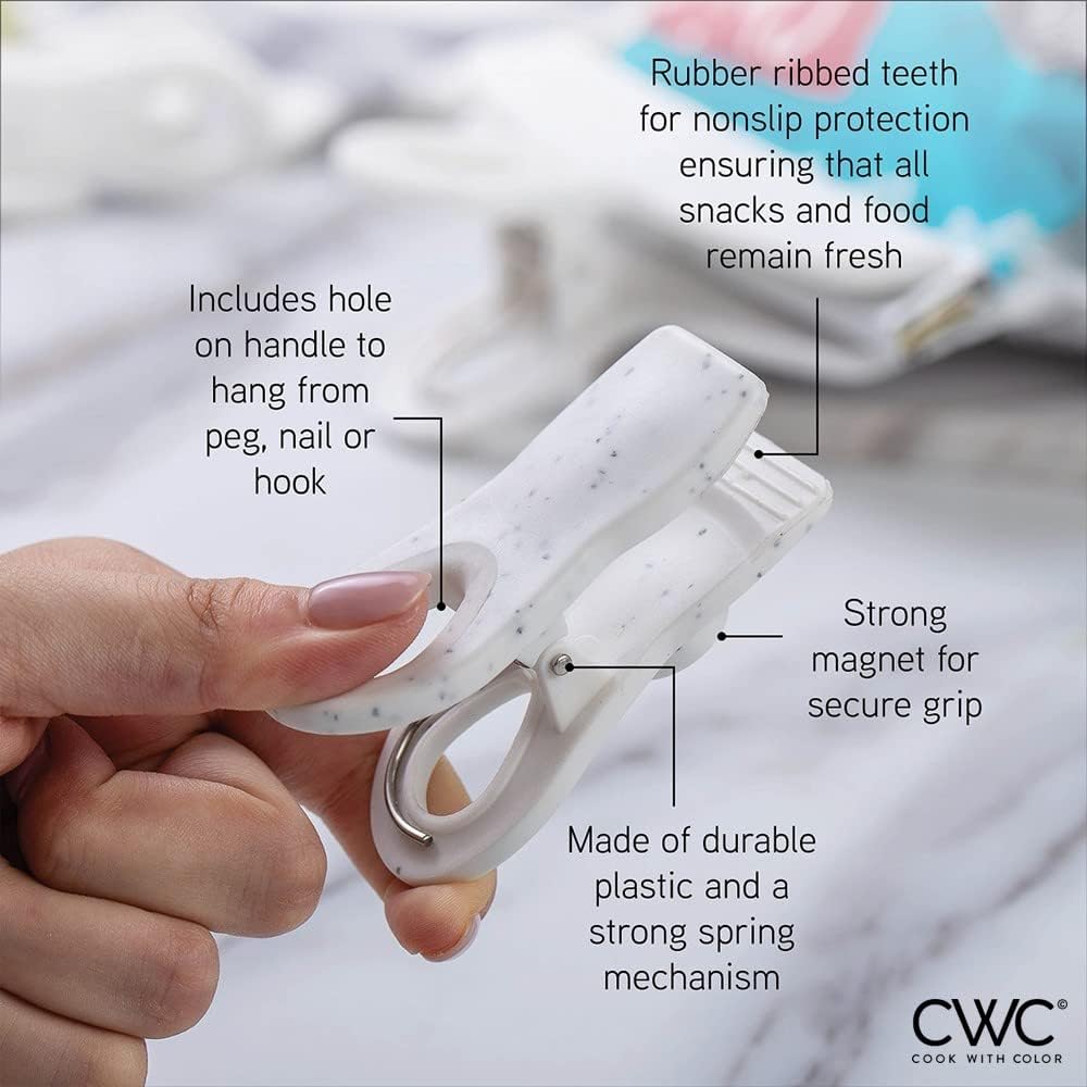 - Bag clips are one of those things you never have enough, invest in a set of durable, long lasting, soft touch, kid friendly Cook with Color food bag clips and organize your home and office with a colorful set of spring clips.