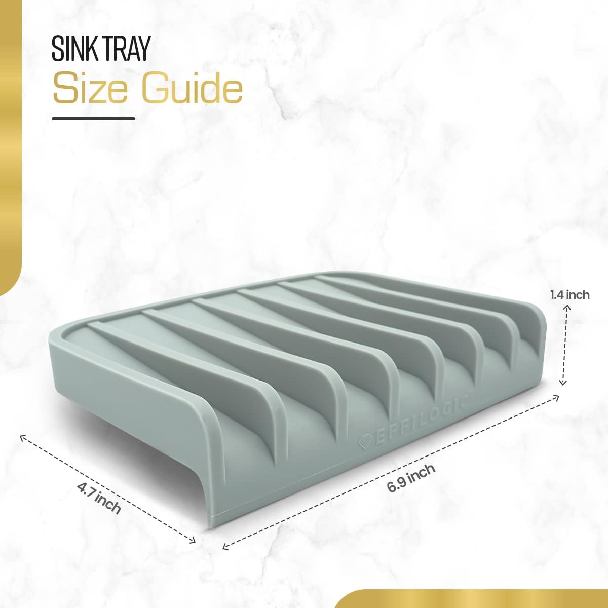 - ✅ FOOD SAFE FLEXIBLE SILICONE AND DESIGNED FOR UNDERMOUNT SINKS: This Kitchen soap tray is made of heat resistant, dishwasher proof (-40°F to 390°F), flexible silicone material which is BPA free. Sponge holder is thick and durable. It can be used as a silicone drying mat for kitchen counter. Dry all your day to day items such as fruits, vegetables, utensils, soap bottles , soap dispenser, sponges, and more. This sink tray comes in 3 great colors Gray, White and Black