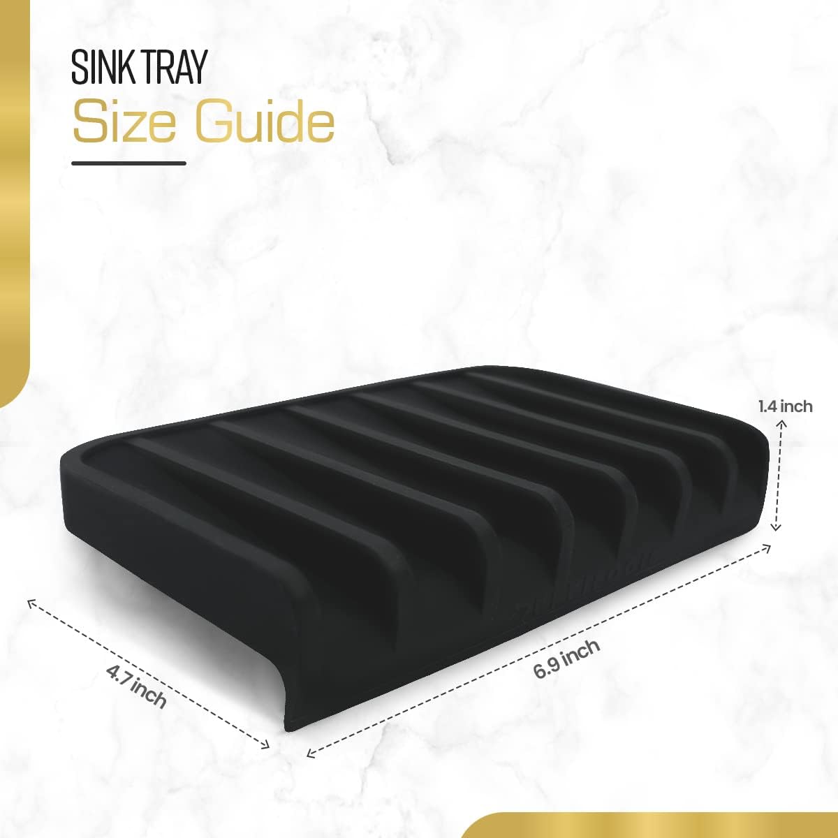 - ✅ FOOD SAFE FLEXIBLE SILICONE AND DESIGNED FOR UNDERMOUNT SINKS: This Kitchen soap tray is made of heat resistant, dishwasher proof (-40°F to 390°F), flexible silicone material which is BPA free. Sponge holder is thick and durable. It can be used as a silicone drying mat for kitchen counter. Dry all your day to day items such as fruits, vegetables, utensils, soap bottles , soap dispenser, sponges, and more. This sink tray comes in 3 great colors Gray, White and Black