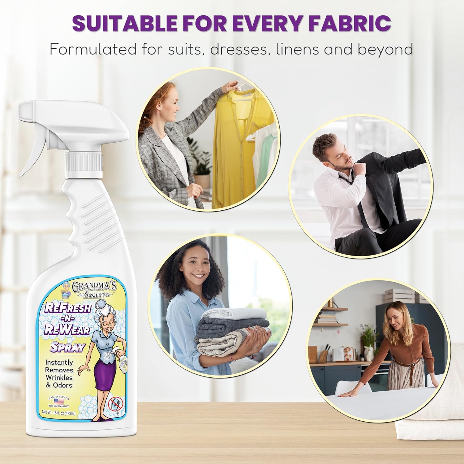 Grandma's Secret Refresh N ReWear Spray - Instantly Removes Wrinkles & Odors - Wrinkle Release, Fabric Refresher Spray, Chlorine, Bleach and Toxin-Free - 16 Ounce, 2 Pack