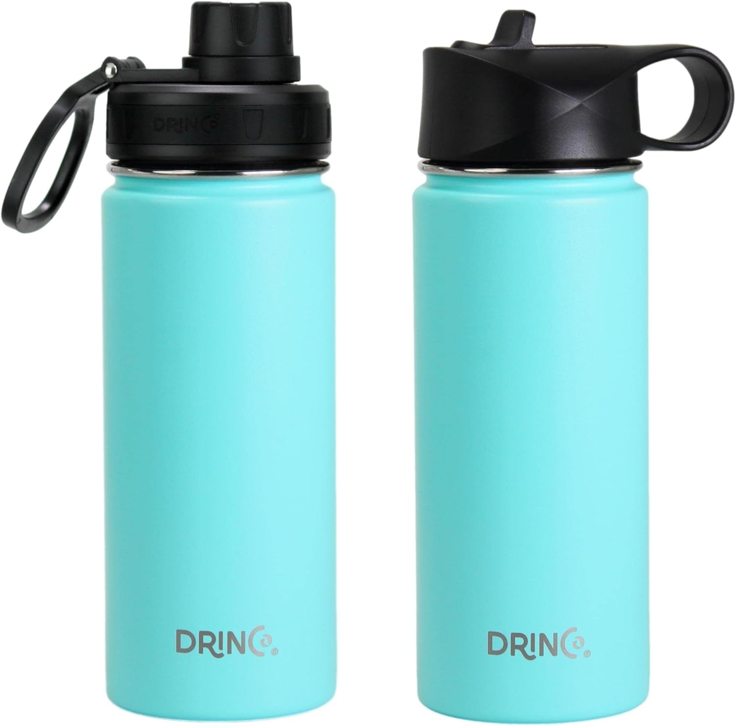 DRINCO Stainless Steel Water Bottle Spout Lid Vacuum Insulated Double Wall Water Bottle Wide Mouth (40oz 32oz 22oz 18oz 14oz) Leak Proof Keeps Cold or Hot (18 oz, 18oz Teal)