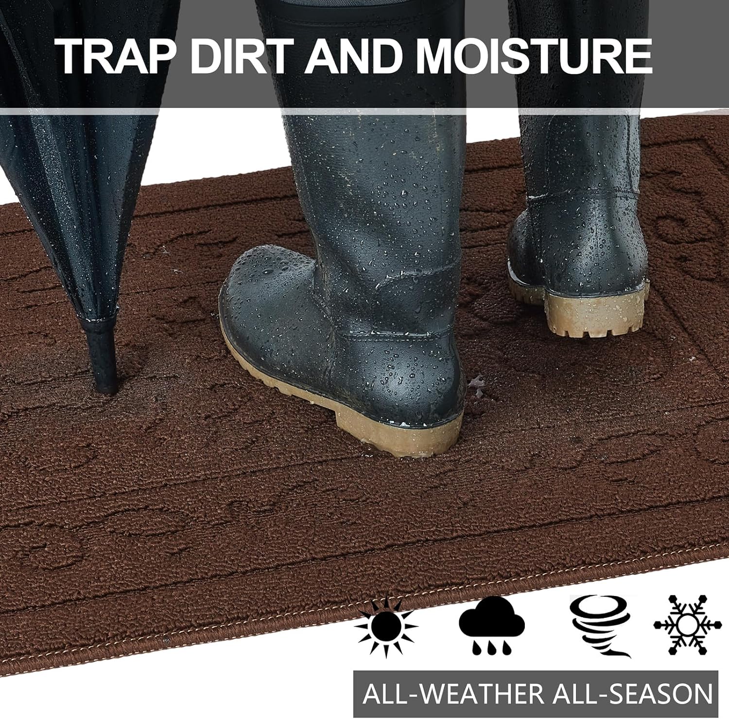 - TRAP DIRT AND MOISTURE EFFICIENTLY: Our indoor door mat is designed to keep your home clean by trapping dirt and moisture right at the entrance. Made from premium Polypropylene with dense yarns, this door mat quickly scrapes dirt off shoes, ensuring your floors remain dry and spotless. Keeping the floors clean and dry. Widely used in any weather, especially rainy, snowy or muddy weather. Suitable for front door, back door, entryway, indoor entrance, etc