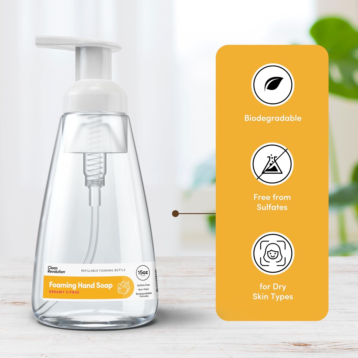 Clean Revolution Ready to Use Foaming Hand Soap | Three Pack | Jumbo 15oz Bottles | Gentle, Moisturizing & Eco-Friendly | Real Essential Oils | Dreamy Citrus, 15 Fl Oz (Pack of 3)