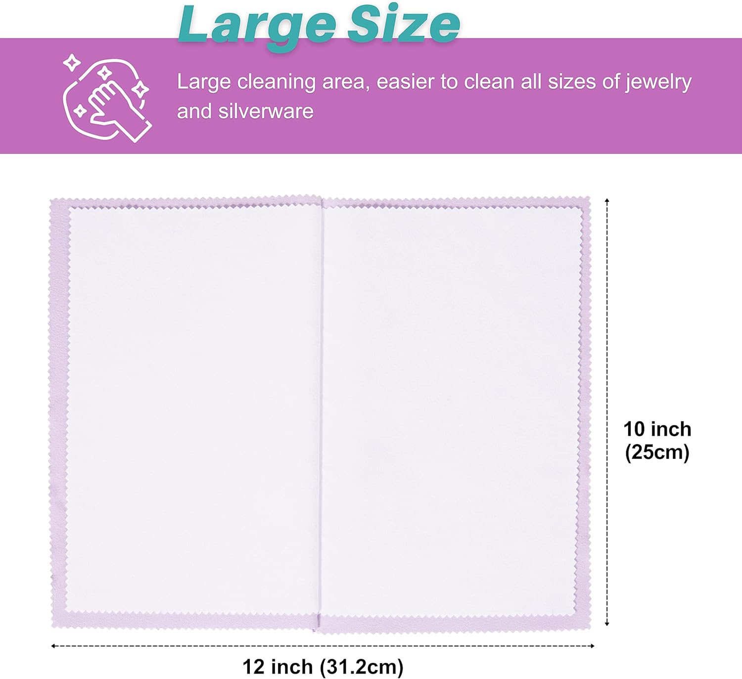 - LARGE SIZE: Each polishing cloth has an unfolded size of 10 inches X 12 inches (25cm X 31.2cm). The large jewelry cleaning cloth is easier to grip and easier to clean silverware and jewelry of different sizes.