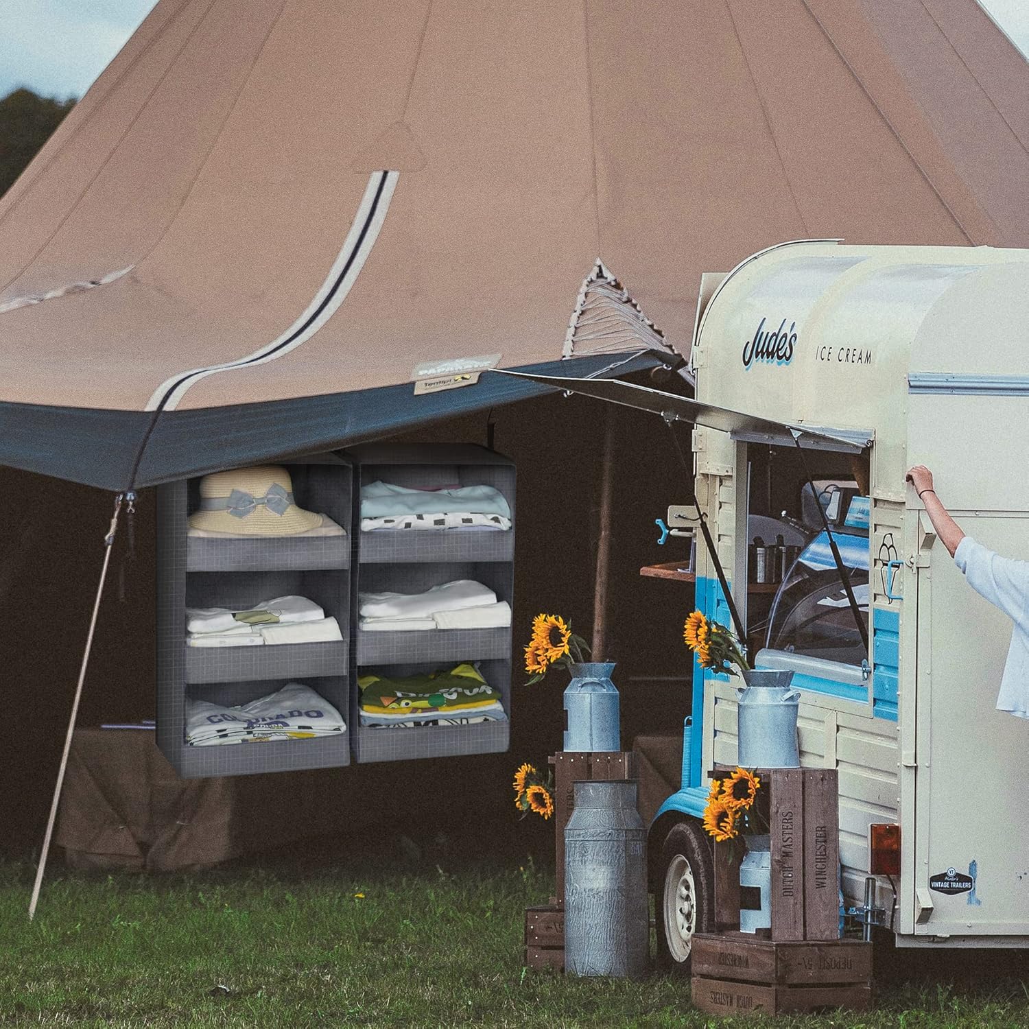 - Foldable & Portable: Our closet hanging organizer can be folded for storage, making it easy to carry. Simply fold it up when not in use or when needed for a travel camper.