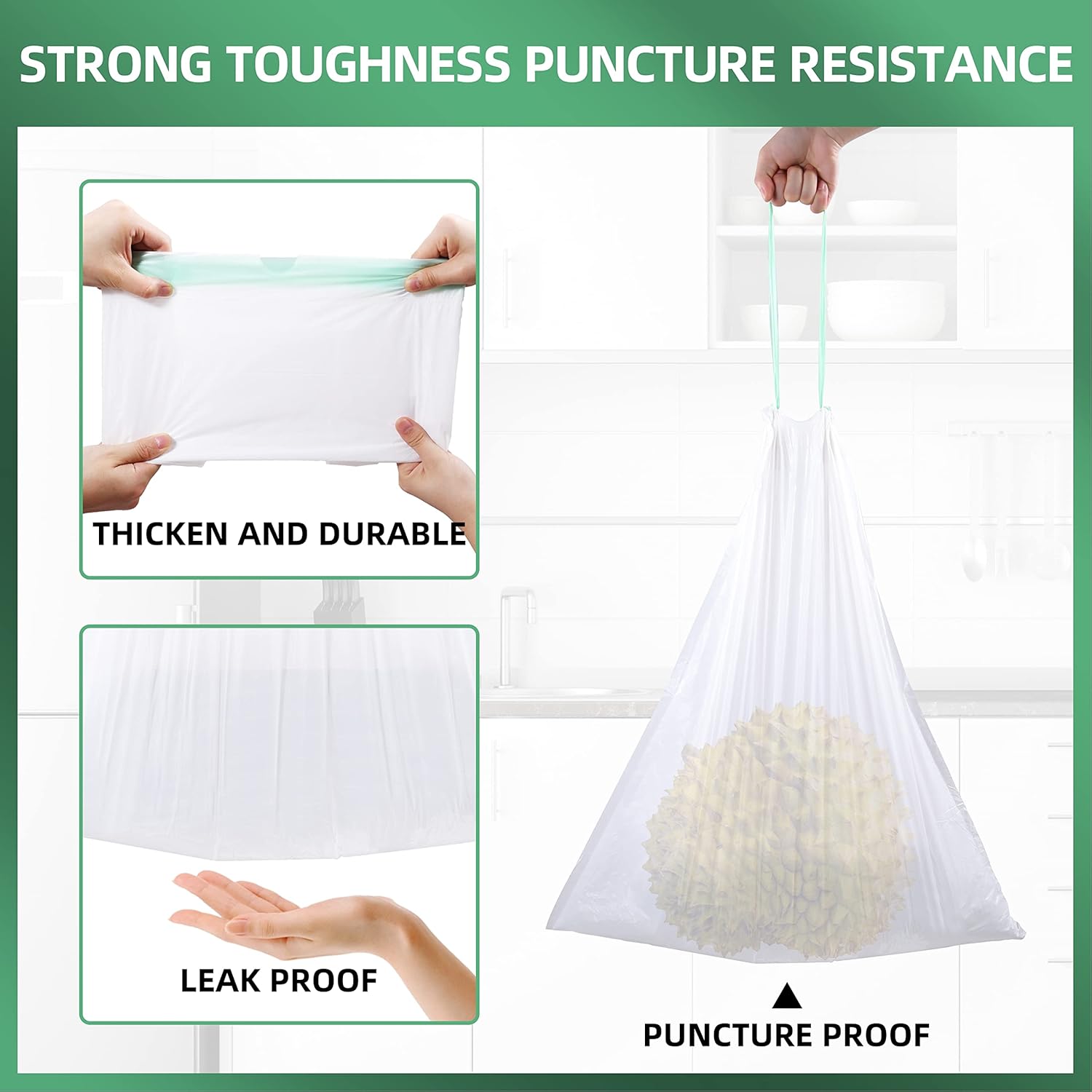 - Unscented - The 8 gallon drawstring trash bags are unscented and translucent, it prevents you from being sensitive to odors, and facilitate you to identify and sort garbage.