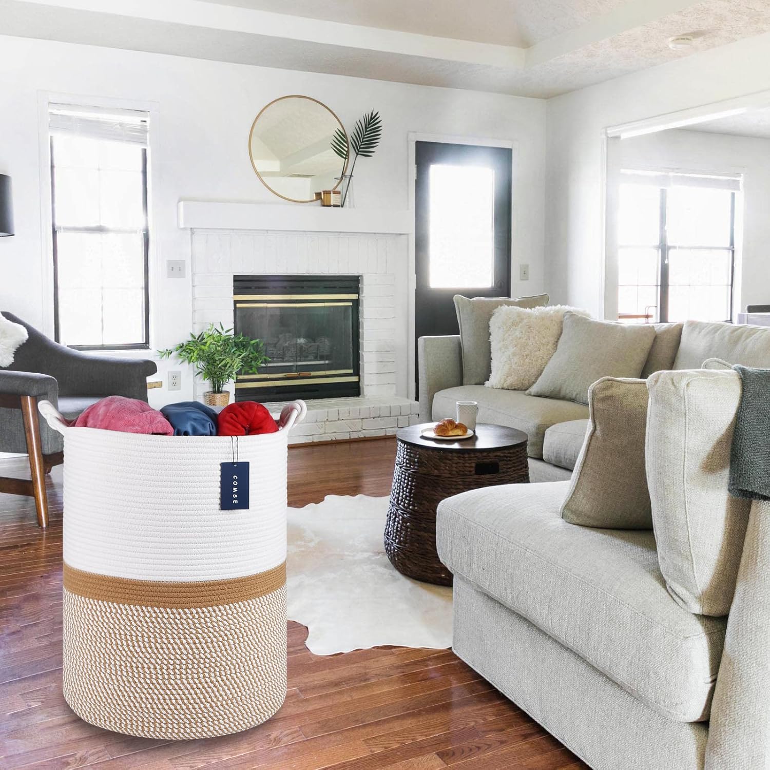 - 【Large Size】15.7" x 21.7", Tall blanket basket which is perfect for throw pillows, blankets, toys, clothing, Comforter or Cushions. Whether it is helping your child develop clean living habits, or as a decorative basket for your friends. With the appearances and practicality, we believe COMSE cotton storage basket is perfect as a gift for Birthdays, Festival.