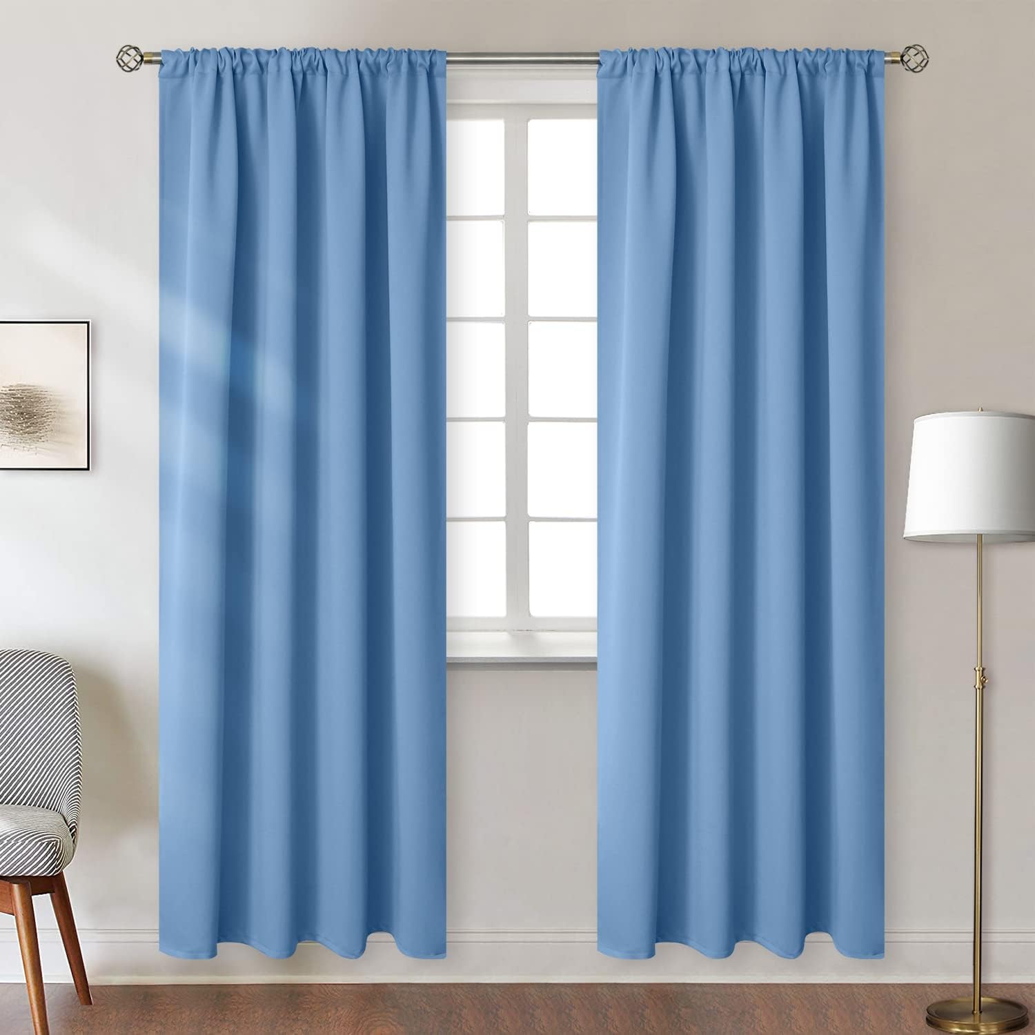 - Package Includes: Set of 2 denim blue blackout curtains; each panel measures 42 Inch wide by 84 Inch long.