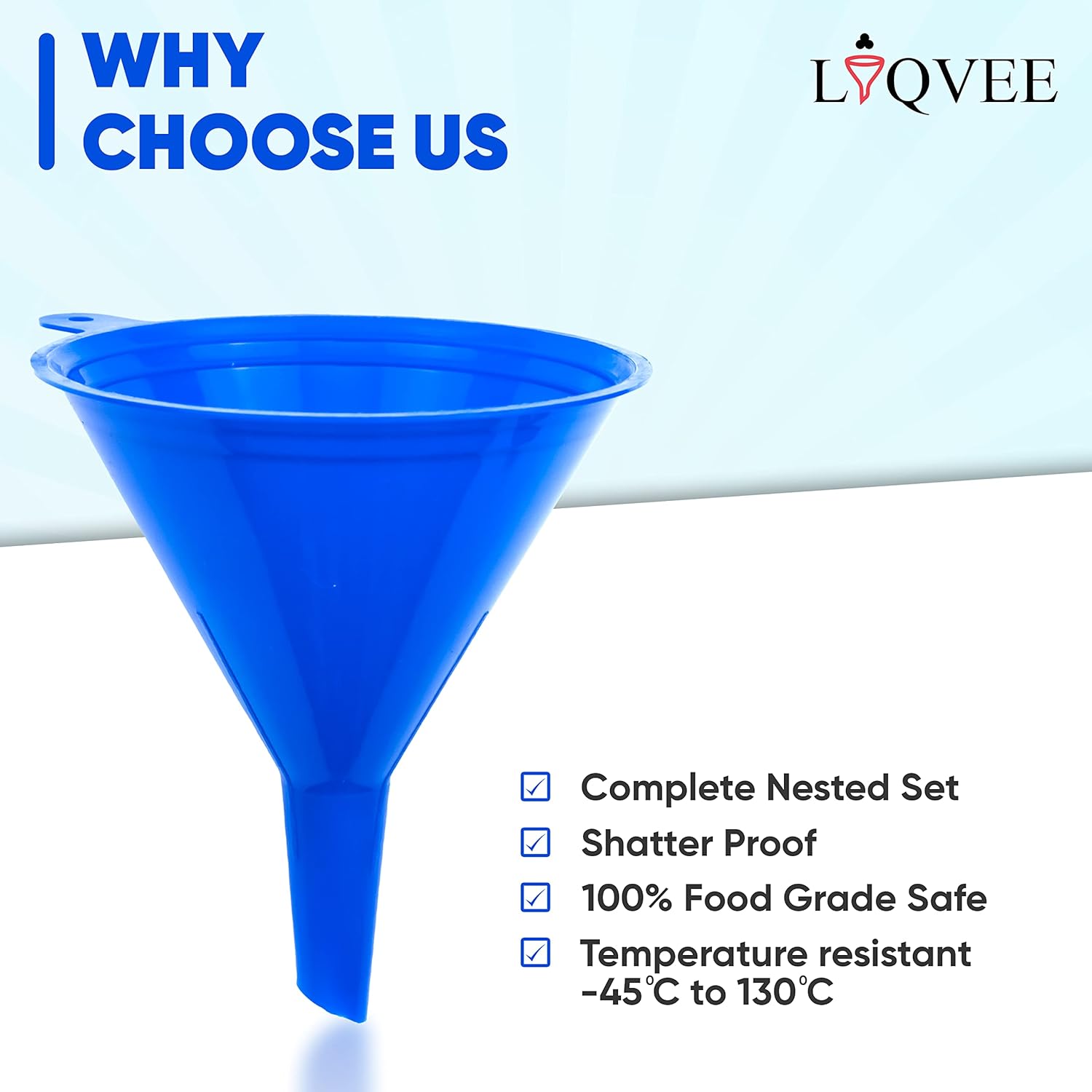 - Space-Saving Design: Our kitchen funnel set is designed to save space. The colorful, stackable design ensures easy storage, making it ideal for small kitchens and garages. Keep your plastic funnels handy for any kitchen or automotive use.